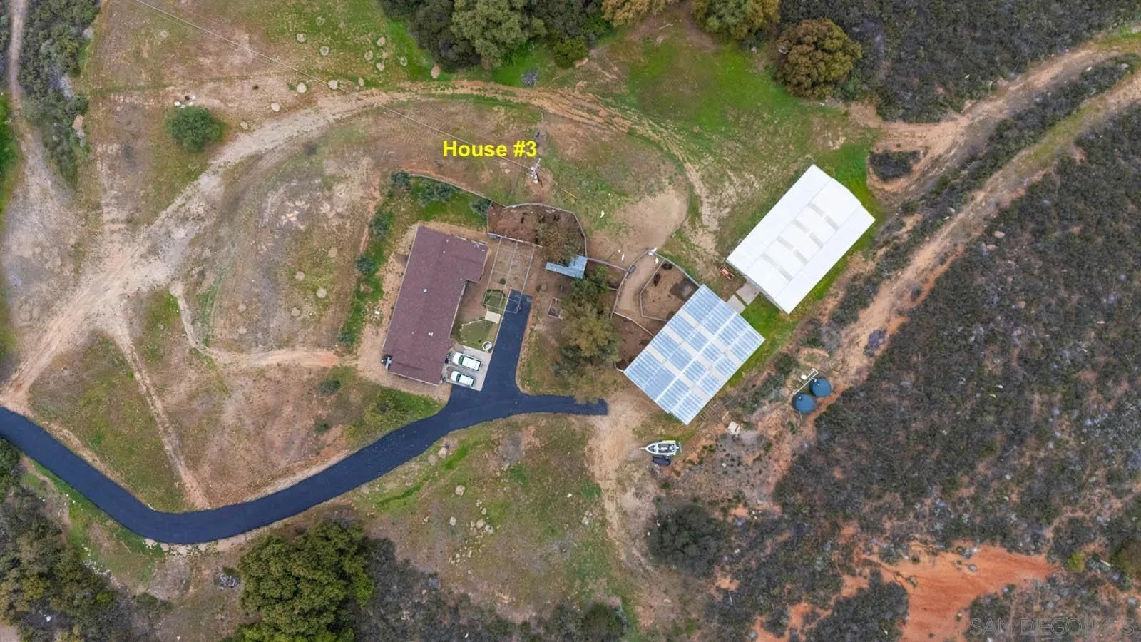INFO Welcome to your own private 75-acre retreat nestled in the serene back country of San Diego. This extraordinary property features three separate homes, 3 separate address, each with its own private driveway, well, electrical meter, and septic system. Possibly ASSUMABLE $1.2M LOAN based on lender approval. Two of the homes boast 3 bedrooms and bathrooms, while the third one has 2 bedrooms and 1 bathroom. Main House 2,332sf, House #2 (2198sf) House #3 (1788sf). All homes underwent an extensive remodel in 2018, including new electrical, plumbing, roofing, stucco, flooring, doors, kitchens, insulation, bathrooms, wiring, appliances, and water tanks and a freshly repaved driveway. Main House and House #2 have paid off solar with 40 panels on each house. In addition to the homes, there are two barns (approximately 3,000 sq. ft. each; permits unknown). During the rainy season, a natural stream and seasonal lake create a breathtaking landscape and invite abundant wildlife sightings. Whether you're seeking a multigenerational estate, an income property, a private ranch, or simply a peaceful retreat, this property offers unparalleled privacy, natural beauty, and endless potential. Don't miss the opportunity to own this slice of