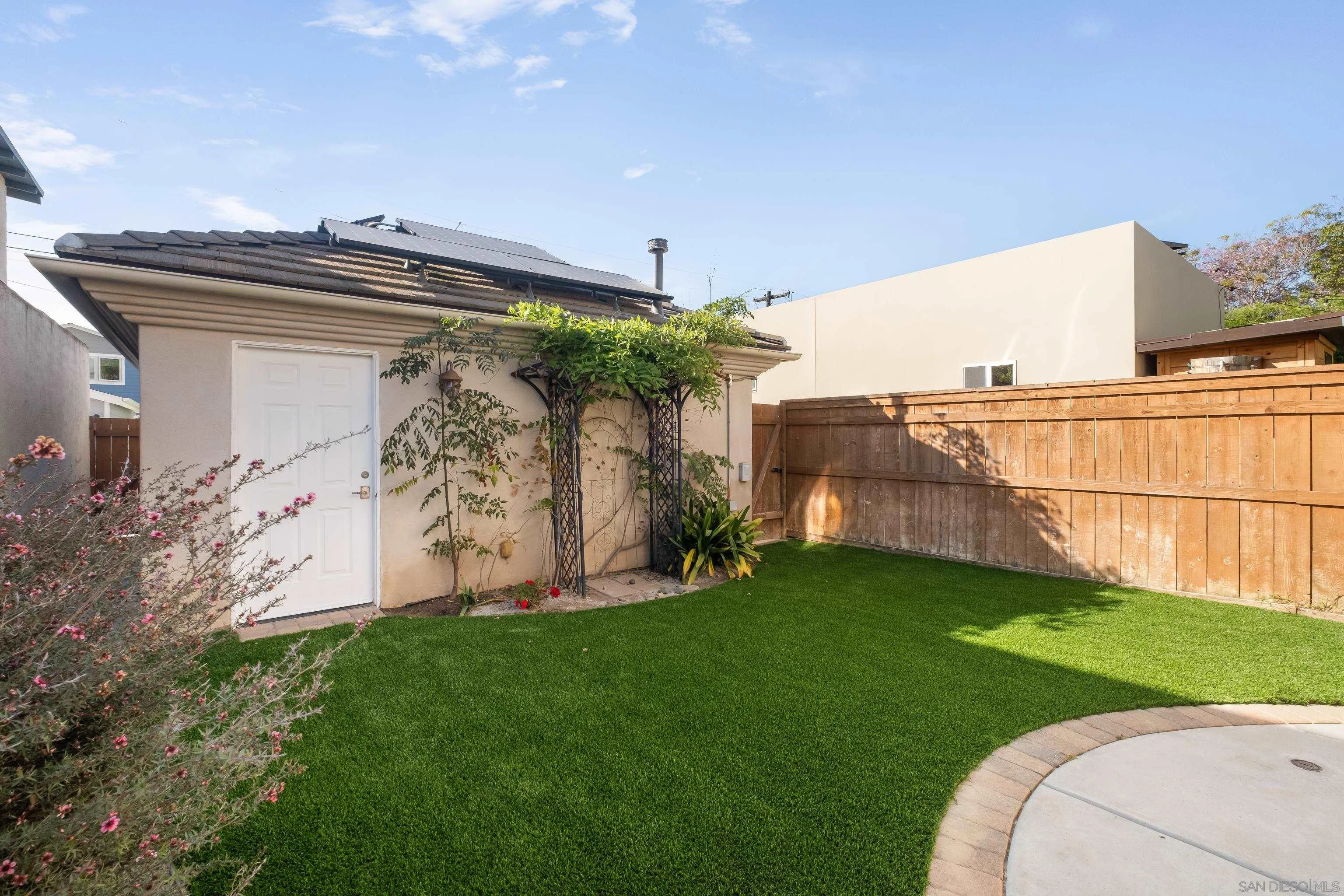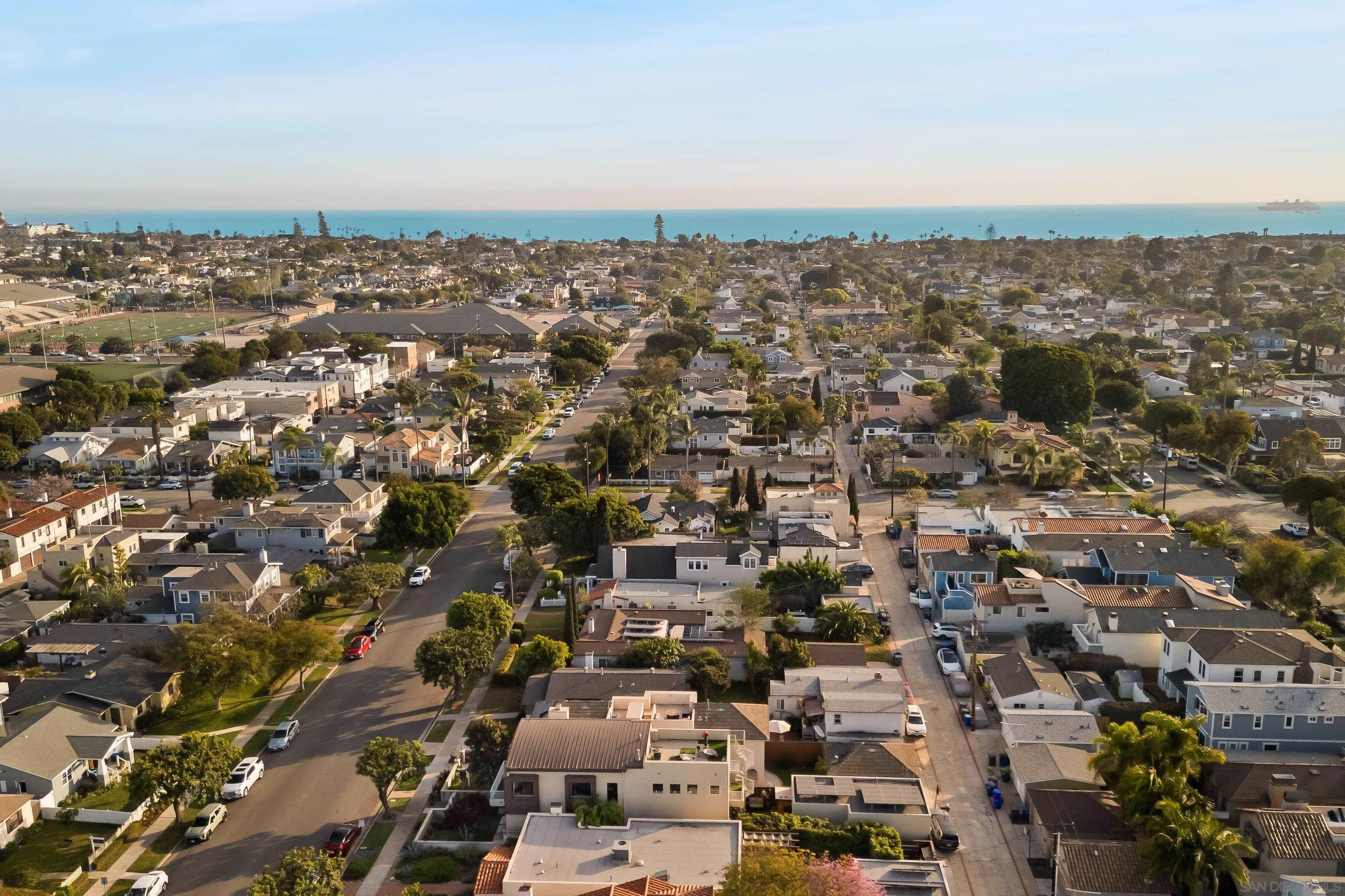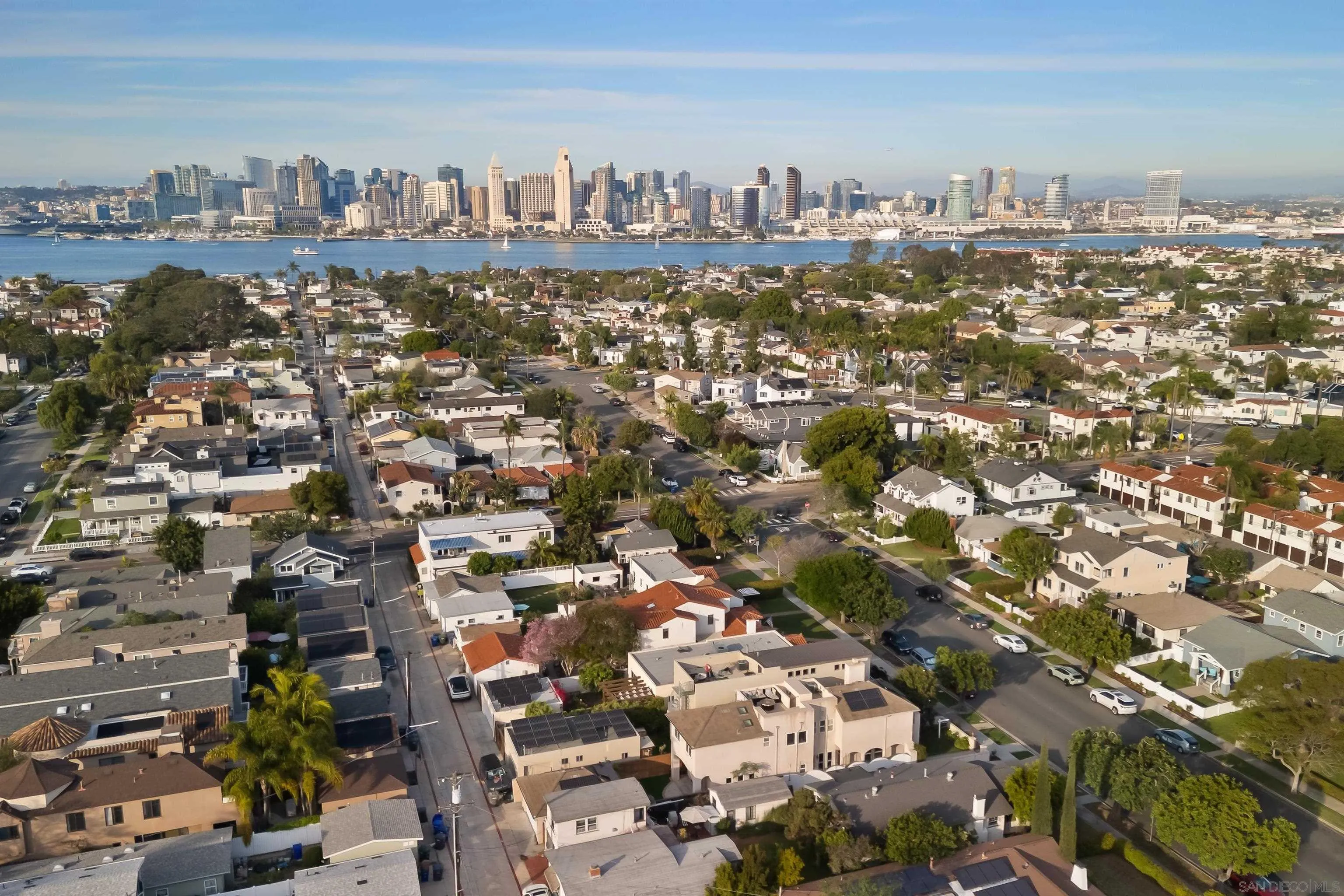 In the heart of Coronado Village, this stunning residence captures the quintessential Coronado lifestyle. Soaring 10-foot ceilings flood the home with natural light, complementing the elegant tumbled travertine flooring throughout the main living areas. The thoughtfully designed kitchen features full-height alder cabinetry, quartz countertops, and stainless steel appliances, ideal for both everyday living and entertaining. Custom built-ins in the living and family rooms add a refined, sophisticated touch. Upstairs, all bedrooms are privately situated, including a spacious primary suite with three closets, a private balcony, and a beautifully appointed ensuite bath. A bright, built-in office or study area surrounded by windows offers the perfect work-from-home setup. Enjoy breathtaking 360-degree panoramic views from the expansive rooftop deck, showcasing Coronado, the iconic bridge, and city skyline. Additional highlights include owned solar, a tankless water heater, and a two-car garage with convenient alley access, an always sought-after feature in Coronado.