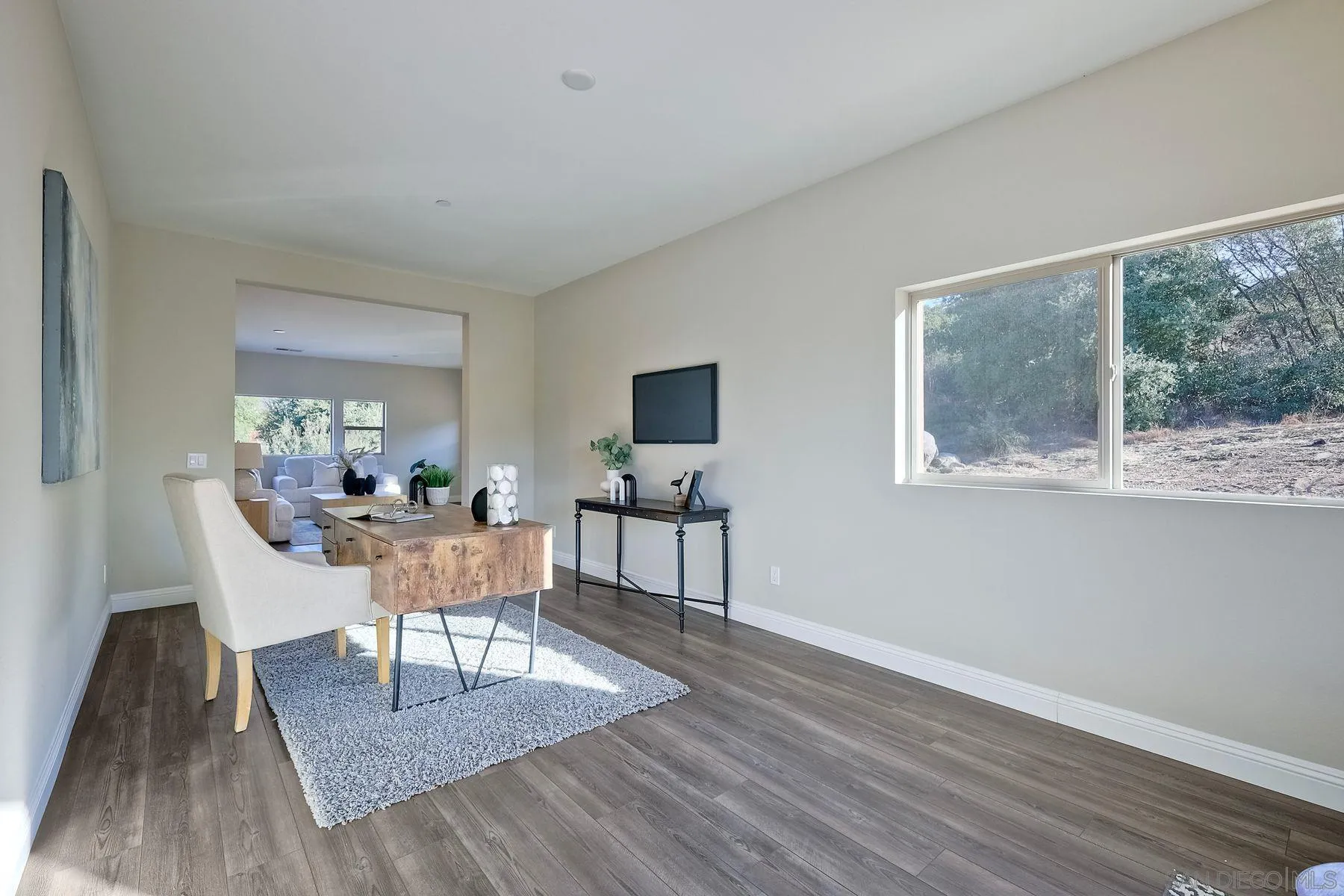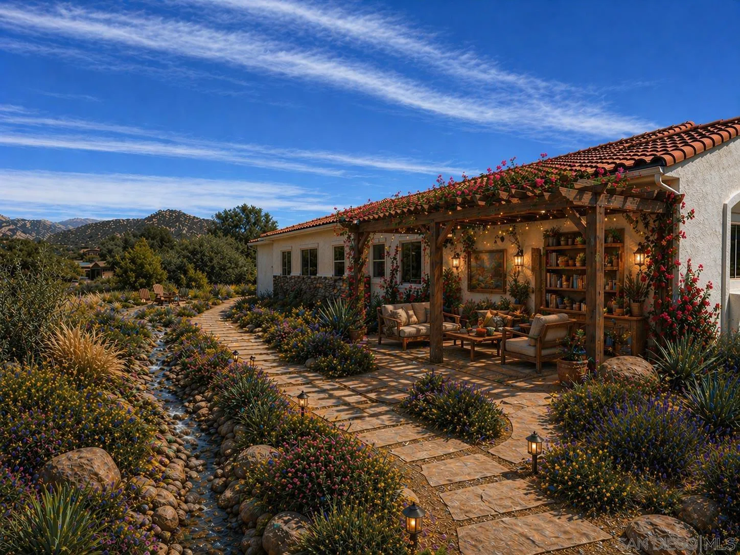 This brand new single-level builder home offers a well-designed and highly functional layout within the gated Trevi Hills community, ideal for buyers seeking space, flexibility, and value. Positioned in a quiet location with a north-facing mountain and hillside outlook, the home enjoys gentle breezes and a calm, private atmosphere. The floor plan is thoughtfully arranged to support both everyday living and entertaining. A true cook’s kitchen anchors the home and opens seamlessly into the great room, creating an inviting central space. In addition, the home features a separate family room and a dedicated dining area, offering multiple living and gathering spaces rarely found in new construction at this price point. A versatile den provides added flexibility and may be used as a home office, guest space, or considered for conversion to an additional bedroom, depending on buyer needs. Designer-selected finishes and tasteful upgrades enhance the home’s appeal, delivering a move-in-ready experience that balances comfort and style. Usable backyard and side-yard space provide opportunities for outdoor living, gardening, or simply enjoying the surrounding natural setting. This home represents one of the best value opportunities within the community, combining quality new construction, a flexible and spacious floor plan, and a peaceful setting. Located within a gated neighborhood and within driving distance to San Diego’s beaches, dining, and everyday conveniences, this is an excellent opportunity to enjoy new-home living in a serene hillside environment.