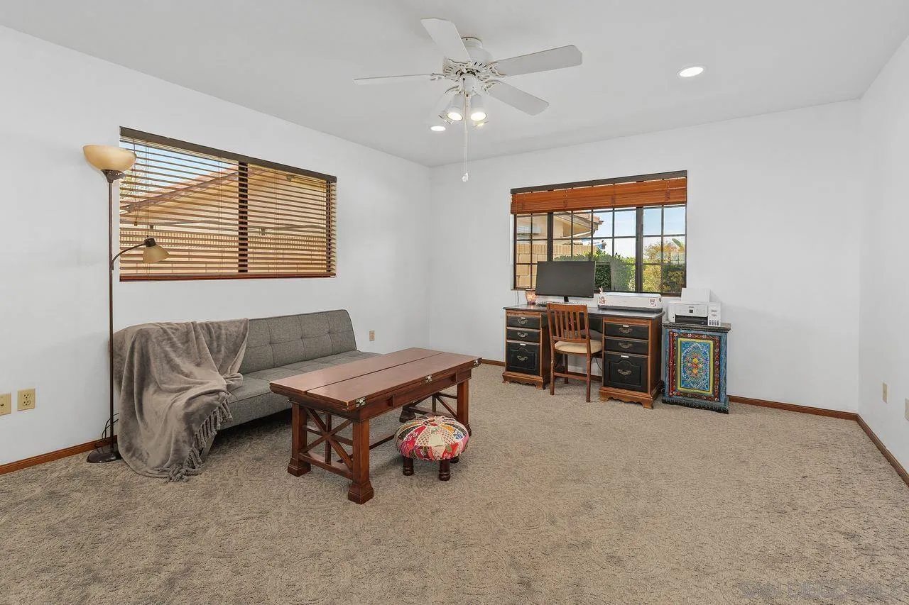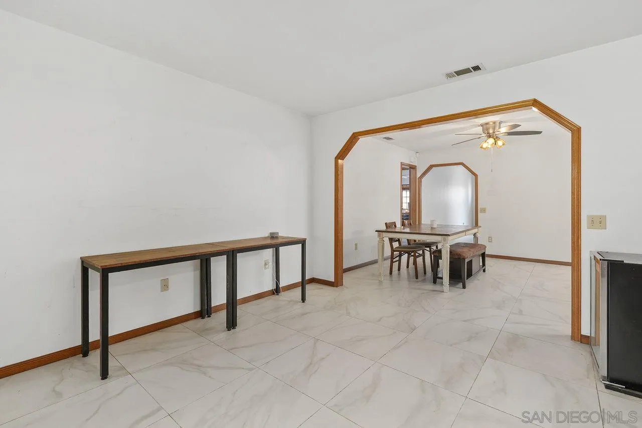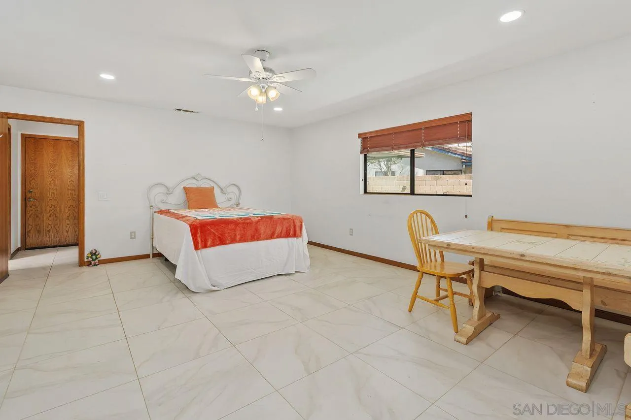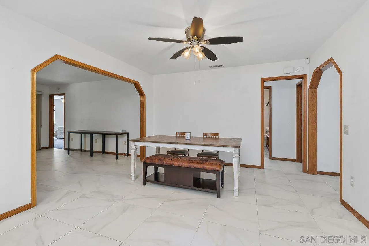 Major upgrades and flexible living space set this home apart! Enjoy a private suite with its own entrance, large bedroom, walk-in closet, and spacious bathroom with a deep soaking tub-perfect for extended family, guests or extra income potential. Recent improvements include an upgraded electrical panel, whole house fan, central AC and heat, and a new oversized 10x20 shed for storage, a workshop or personal retreat. The rare 3-car garage adds even more storage space. Located at the end of a quiet cul-de-sac with no HOA, this 4 bed/2 bath home offers a functional layout with separation between living spaces. The large backyard is divided into three sections and features mature fruit trees-orange, grapefruit, citrus and a young apple tree-creating your own private outdoor space. Inside you'll find natural light, arched details, a cozy tv room with fireplace and a kitchen with skylight, double ovens, quartz countertops, pull out cabinetry, and plenty of storage. Comfortable, versatile and move-in ready-this home gives you space to live, relax and grow.