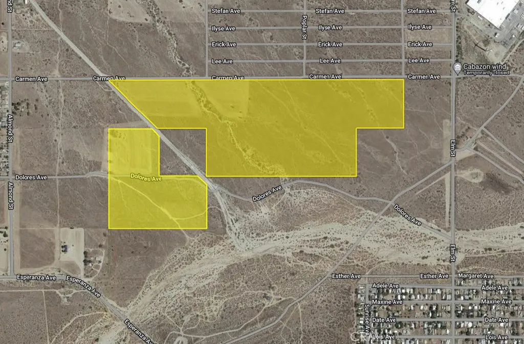 The subject property consists of 13 adjoining parcels that together make up 114.95 acres of land located in Cabazon, an incorporated city in northern Riverside County that lies east of Beaumont and west of Palm Desert. In terms of the property specifications, it has a desert terrain, flat topography, and no existing development. There are multiple incoming and existing industrial developments within 15 miles of the property along the I-10 freeway, including a neighboring 390,000 square foot LEED certified Arrowhead Bottling Plant just to the east of the property. Each of the 13 parcels included are zone RA5 which allows for 5-acre minumum residential lots. The highest and best use for this property would like come with an industrial rezone.
