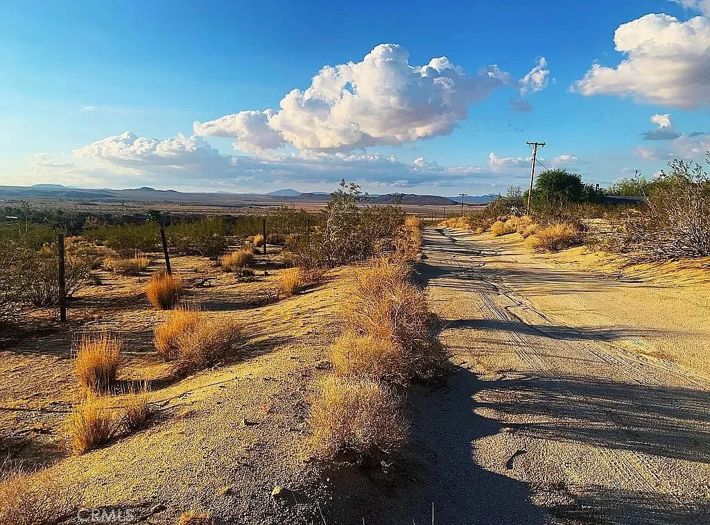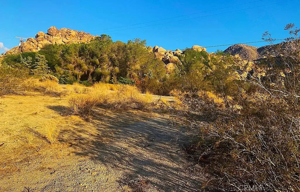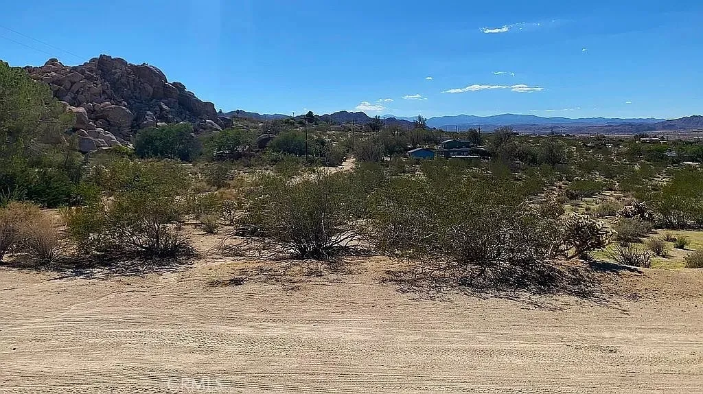 1 and 1/4 acres, corner lot at Mile Square Road and Foothill Drive. Paid water meter, Joshua Basin Water District. The property lies 1,240 feet from Joshua Tree National Park and the south adjacent property is the world class garden of Villa dei Fiori which can be seen in the photos. . To the north lies Casa Mila, a 3,000 sq. ft. recently built Southwestern colonial style house. The corner lot is basically level, sloping to the north. Bighorn sheep herds come down from the boulders to the property across Foothill, Bobcats, hawks, owls, and foxes live in the rocks, a perfect place to enjoy wildlife.