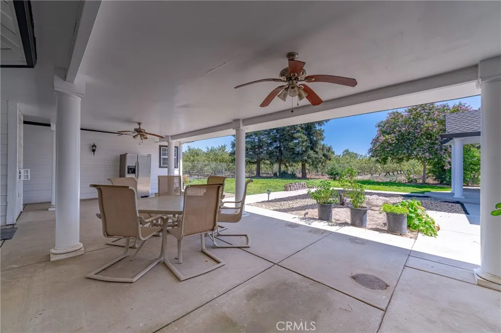 Two Homes & Studio Apartment in garage on about 29 acres of 13 year old Almond Ranch. Main home is a beautiful custom home, 5 bedrooms, 5 1/2 baths and 4145 square feet of living space. Most bedrooms have their own private bathrooms. Separate living, family and dining room. An additional nook in kitchen. Cherry Cabinets with Marble Counters, Stainless Steel appliances and 5 burner gas stove. Cherry flooring upstairs and downstairs. Some 19 foot high ceilings, crown molding, Master Bath has dual closets, jetted tub and tile flooring. House has much more. Large Circular Concrete Driveway. Large covered patio adjacent to 1 bed, 1bath 900 square foot Granny House. 48 x 25 foot shop with power.