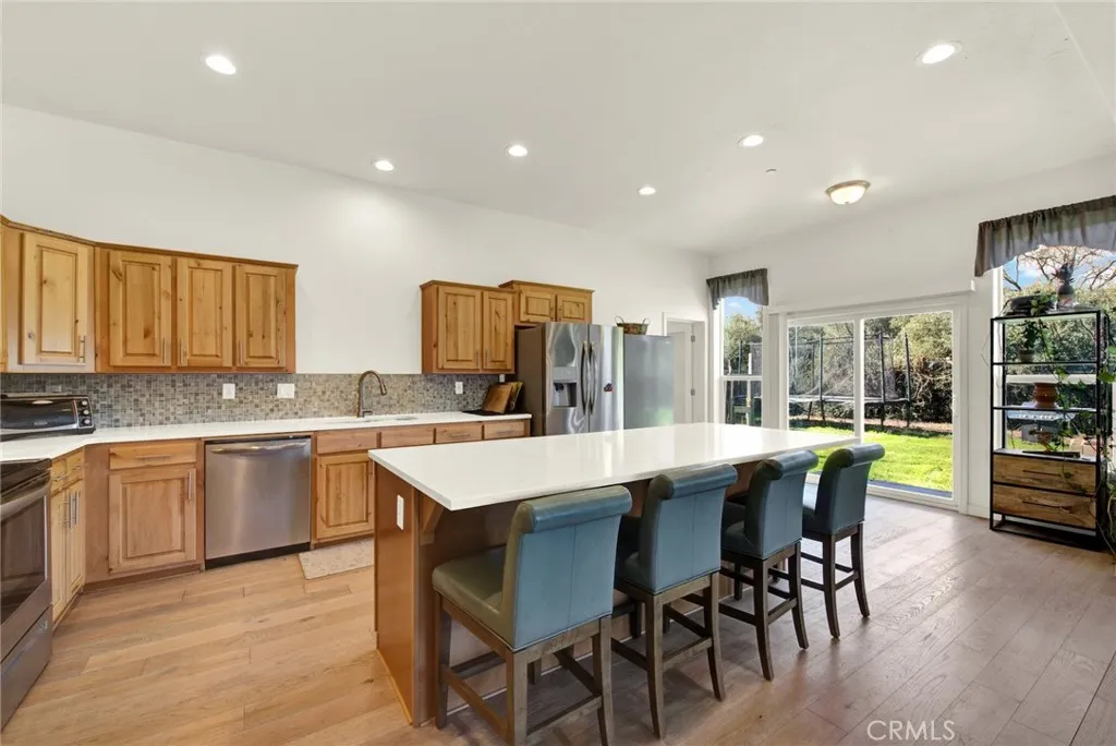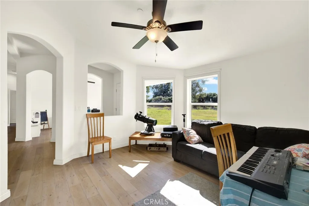 WELL HELLO BEAUTIFUL!! Welcome to 23580 Loleta. Nestled behind an ancient olive grove is this fantastic home boasting 2658 square feet. The well is an impressive 350 feet deep and the solar is PAID FOR, what a bonus on your electric bill. Step up into up into the entry way sand you will be impressed right away. There are two great sized rooms on either side of the formal entryway, each of which would make a great guest suite. The other room could be used as many things, a bar, exercise room, playroom and more. The living room is open concept to the dining area and kitchen. Love to cook? The kitchen is absolutely gorgeous with ample prep, storage and cupboard space. The island is a fantastic size (perfect to put plenty of people around) and the crisp white granite really looks beautiful. Just off the kitchen is the walk-in pantry (storage galore). Each of the bedrooms are a great size and the guest bath also has double sinks (great for 2 people to get ready at the same time). The master bedroom is really nice boasting not just one but 2 walk in closets. The master bathroom is large and has double vanities and soaker tub with nice sized stand-up shower. Most of the home has beautiful wide planked wood laminate flooring throughout with the exception of the bedroom which has carpet. The mudroom is a pleasant surprise with a nice size soaker sink, added storage and a bar to hang your close. This amazing place flows nicely with its vaulted ceilings and natural light that streams throughout. Imagine sitting on your back porch watching the continuing nature that strolls by. Plenty