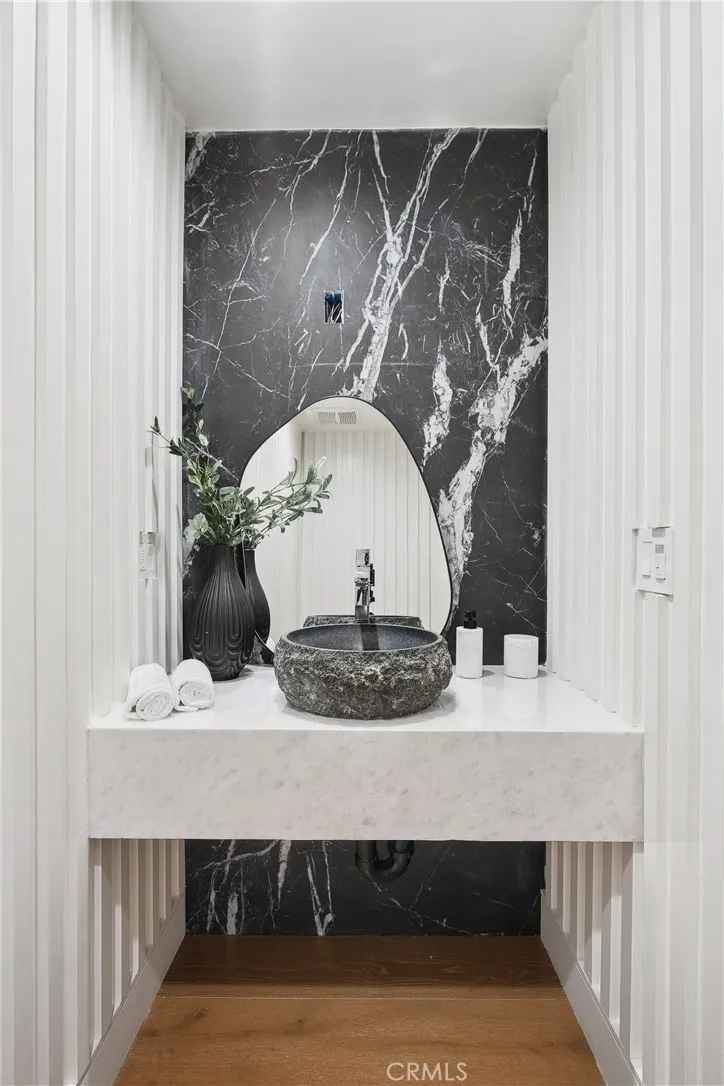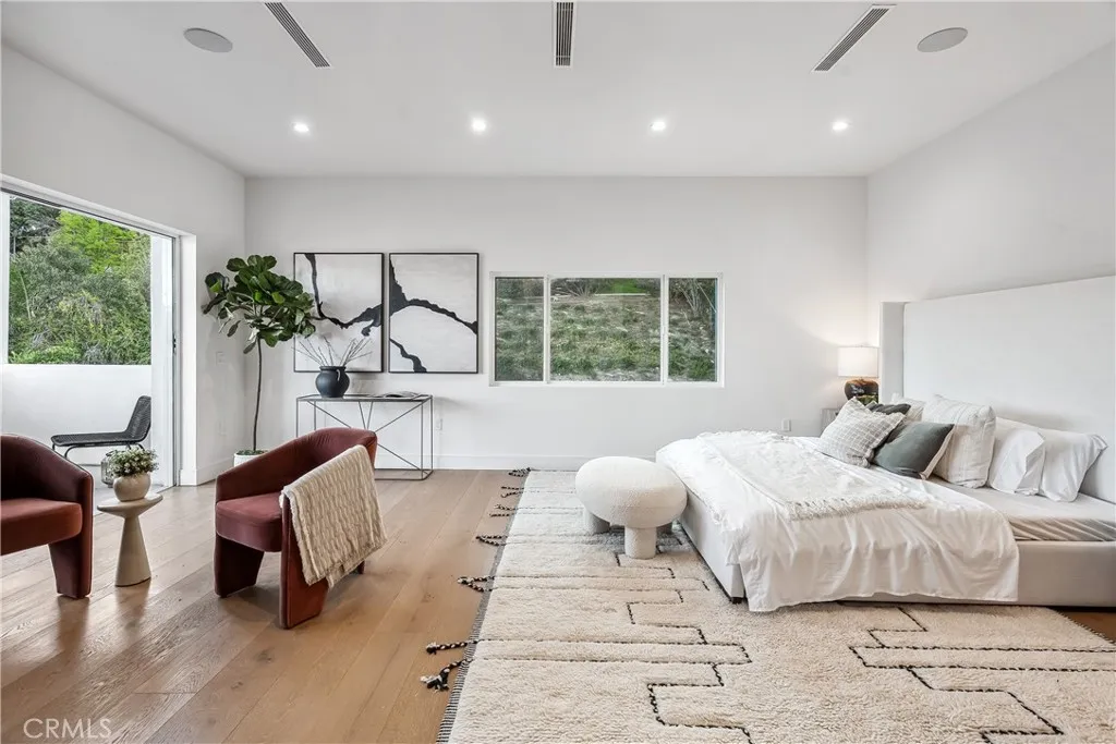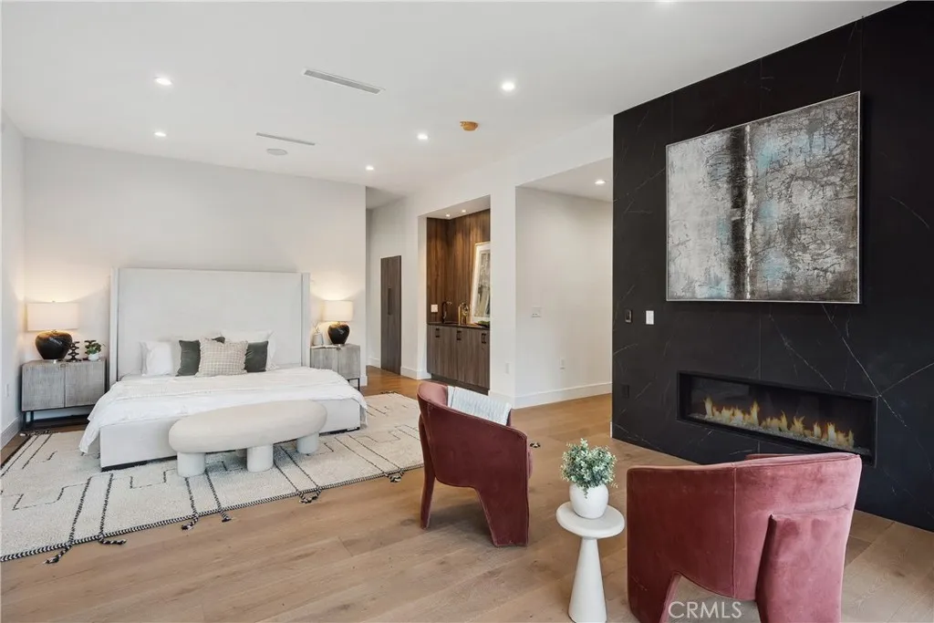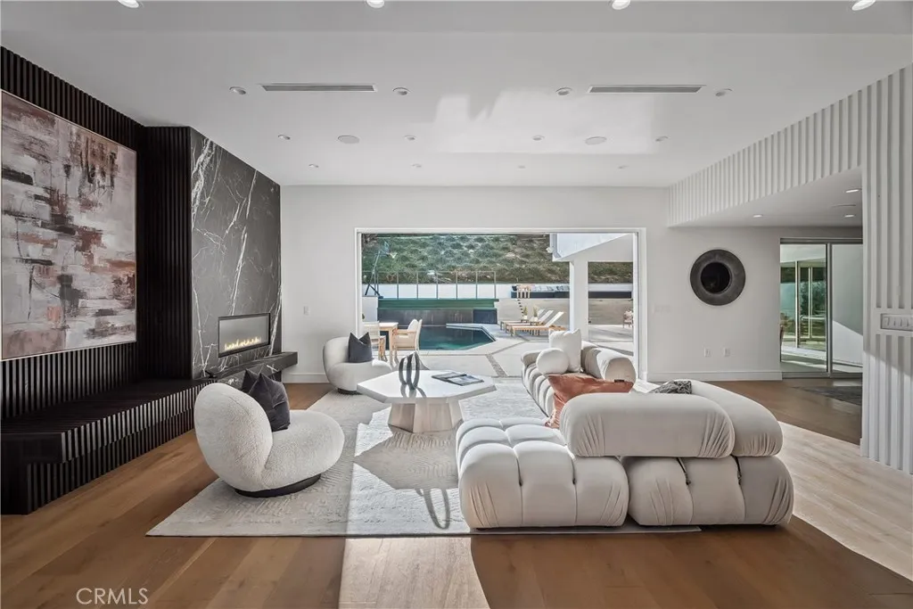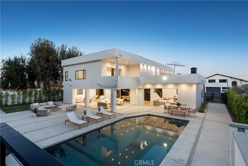 Experience modern luxury living in this beautifully remodeled home, situated on a sprawling 16,000+ sq ft lot in the hills of Tarzana. This one-of-a-kind property consists of an open-concept 4-bedroom, 5-bathroom primary residence and attached 2-bedroom, 2-bathroom ADU. The spacious living room, anchored by a striking statement fireplace, flows seamlessly into the formal dining room and family room creating the perfect setting for both intimate gatherings and grand entertaining. A culinary enthusiast's dream, the sleek modern kitchen is equipped with high-end Gaggenau appliances, custom cabinetry, and a large center island. Designed for quintessential California indoor-outdoor living, four oversized sliding glass doors disappear into the walls, opening to a private backyard retreat. Here, youll find an entertainers paradise, complete with a sparkling pool and spa, sports court, outdoor kitchen, covered patio, and built-in fire pit. Back inside, the upper level features four generously sized ensuite bedrooms and a laundry room. The lavish primary suite is a true sanctuary, highlighted by a large private balcony, versatile bonus space ideal for an office or glam room, custom walk-in closet, and chic bathroom, boasting a soaking tub, rainfall shower, and double vanity. Additional amenities include a state-of-the-art security system, built-in speakers, high ceilings throughout, and two driveways. The guest house, with its own private entrance, offers a living room, kitchen with Miele appliances, two bedrooms, two full bathrooms, and in-unit laundry. This versatile space is per