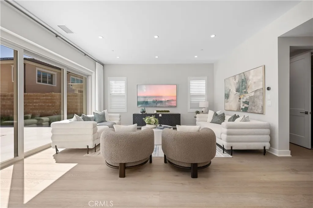 Located in the Azul community at Portola Srpings, the house hosts 4 bedrooms and 3 full bathrooms with big back yard. A charming covered entry leads you into the inviting foyer which offers glimpses of the grand staircase.lot of upgrades including gorgeous engineer wood flooring throughout the first floor and stairways, carpets of all bedrooms, even extended to all the closets, waterfall ditch island, built-in refrigerator.Expansive sliding door of great room allows for seamless indoor/outdoor living. Indulge yourself in the well-appointed master suite with a spacious retreat and walk-in closet . the master bathroom offers double vanities, a large glass door shower, a modern soaking tub and huge walk-in closet.The highly regarded Portola High School, a $300 million investment by the city, boasts state-of-the-art facilities. Resort-Inspired Portola Springs community amenities include 5 parks, including baseball and soccer fields, basketball courts, volleyball Court swimming pools and Kids-playing area.