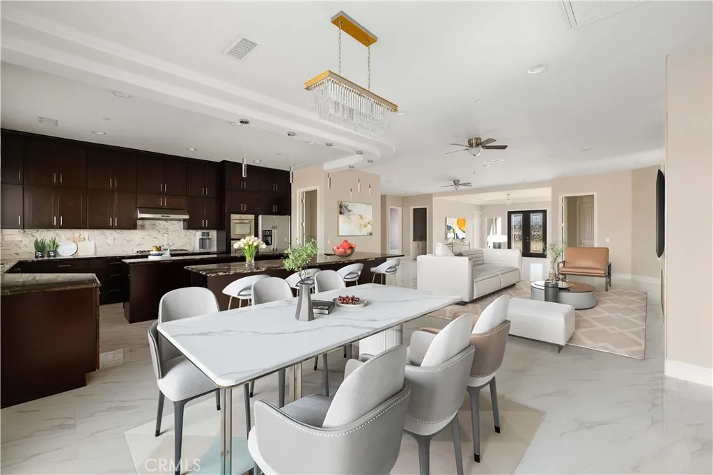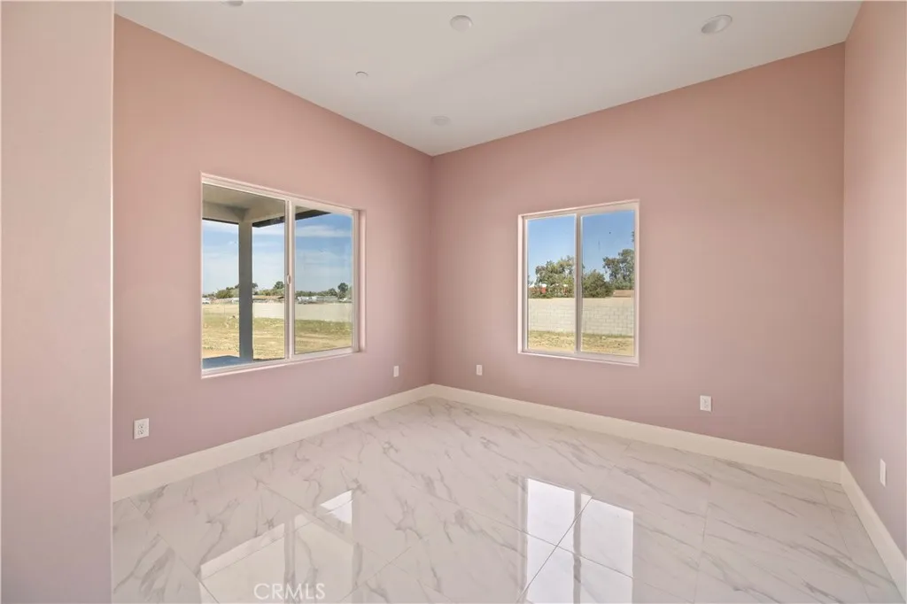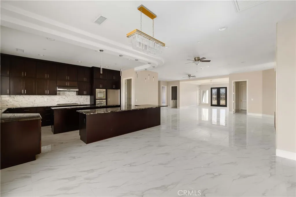 This custom home is in a rural area with room to raise horses and other animals. It is freeway close to commute. Enter through the custom glass doors to an open concept entry, living room, and dining room. The kitchen features two islands, dual ovens, five burner stove, wine cooler, and walk in pantry. Casual dining can be set up at one of the islands. The dining area is nearby with access to the covered patio. The fireplace is placed so that the large screen flat screen television can be placed on the wall above it. There are two primary bedrooms with on-suite bathrooms; another two bedrooms share a Hollywood style bathroom; and, one bedroom can be used as a guest room, den, studio, and much more. There is a bathroom nearby. The floors are exceptional with a custom medallion in the entry. Got vehicles? There are two - two car garages; one on each side of the house. One has additional space for a work bench and tools. The lot features extra room to build a pool area. And beyond that can be the area for animals. The solar system is paid. Front landscaping is in process.