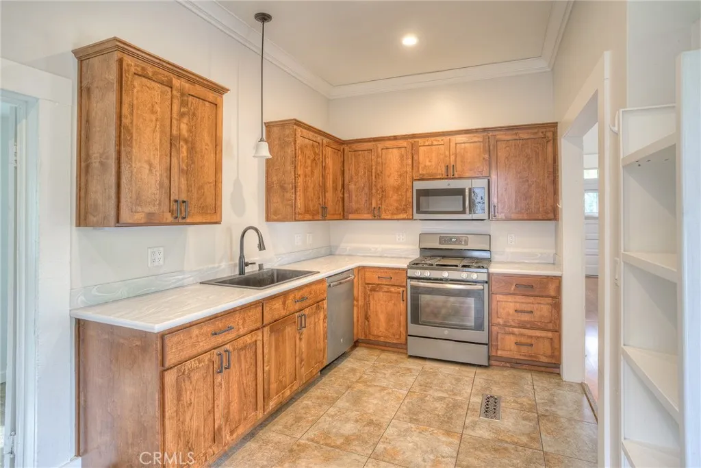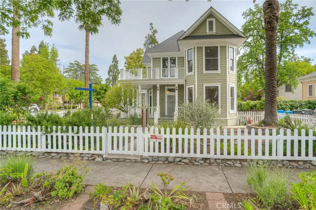 Charming Queen Anne Victorian-Style Home with Modern Upgrades and Inviting Outdoor Spaces Nestled in the heartbeat of historic downtown Oroville, this beautifully maintained home offers a unique blend of timeless elegance and modern comforts. The exterior is a masterpiece of Victorian design with intricate trims, railings and a welcoming front porch. Perfectly situated on a spacious corner lot surrounded by lush greenery, century-old palm trees, matured and young planted fruit trees. The grounds have simple gardens that provide a serene retreat from the hustle and bustle of downtown life. Enjoy the variety of fruit trees, grapes, blackberries, herbs and succulent gardens. This stunning 2-story residence seamlessly blends classic architectural details with modern comforts, offering 4 bedrooms, 2.5 bathrooms, and over 2,700 square feet of living space. From the moment you arrive, you'll be captivated by the inviting covered front porch and second-story balcony, ideal for relaxing with your morning coffee or enjoying peaceful evenings outdoors. Inside, tall windows fill the home with natural light, highlighting the high ceilings. The updated kitchen features GE Profile stainless steel appliances, Corian countertops, and ample cabinetry, while the formal dining room and spacious living room provide perfect spaces for entertainment. Also, downstairs, there is an oversized half bath and a full laundry/mud room. Upstairs, there are three guest bedrooms, generously sized, and a primary bedroom with a spacious, modern bathroom with a walk-in-tiled double shower. At the top of the st