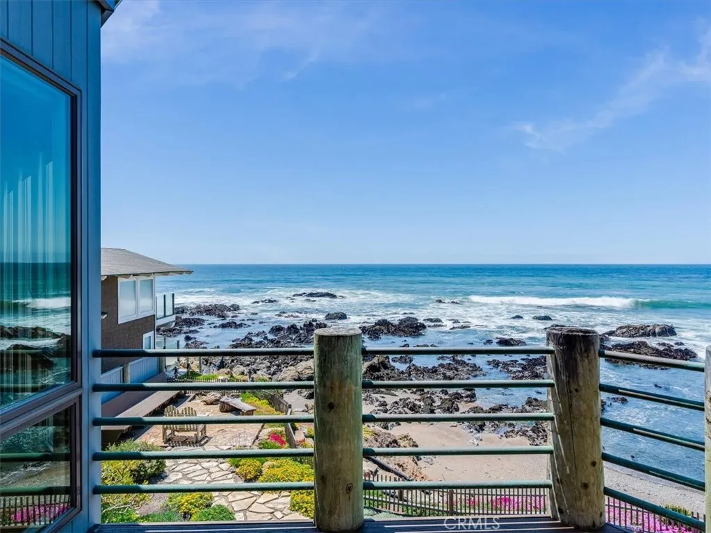 Welcome to your ultimate coastal escapewhere unmatched, unobstructed panoramic ocean views take center stage in this stunning multi-level 3-bedroom, 3.5-bath home with 2,130 sq ft of living space on a 6,417 sq ft oceanfront lot. Floor-to-ceiling windows span the entire back of the home, flooding nearly every room with natural light and breathtaking views of the Pacific. The entry-level features a welcoming foyer, a spacious bedroom with full bath, and access to the attached garage. Upstairs, the main living level showcases a seamless blend of indoor-outdoor living with expansive ocean vistas from the living room, dining area, and chefs kitchencomplete with top-tier appliances, custom fossil-inlaid backsplash, and breakfast bar seating. A cozy fireplace with stone hearth, wet bar, and sliding glass doors to the ocean-facing deck create the perfect setting for relaxing or entertaining. A powder and sitting room complete this level. Downstairs, the lower level features a second bedroom with ensuite bath, laundry room, and the primary suite, where sweeping ocean views, a fireplace, window seat, and a luxurious spa-style bath with jetted tub, separate shower, and private sauna await. Outside, the back patio is thoughtfully designed with slate pavers winding through multiple view-focused seating areas, while a stone stairway leads directly to the beach and tide pools belowoffering a rare and immersive coastal experience. This exceptional home presents a rare opportunity to own front-row, forever ocean viewsideal as a full-time residence or luxurious second home. Just minutes from
