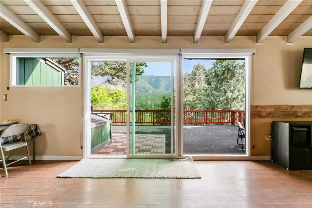 Welcome to this exceptional home nestled on the sunny side of Wrightwood! Boasting breathtaking VIEWS from every angle, this unique property offers the perfect blend of warmth, natural beauty, and mountain living. Situated on the coveted south-facing slope, this home enjoys abundant sunshine while still experiencing the magic of winter snowfall. The 3-bedroom, 2-bathroom residence spans 1,645 square feet and sits on a generous 7,744 square foot lot, providing ample space both inside and out. Step into the main level and be greeted by an expansive deck that showcases the stunning, tree-lined vistas. The upstairs bedroom also features access to this outdoor oasis, perfect for enjoying your morning coffee or evening relaxation. The secondary upper bedroom has a great view outfacing to the street and is adjacent to the kitchen. Stay warm with the Gas Fireplace Insert during the winter months. This home stays cool and airy thanks to its multiple level living. The Custom black out shades keeps the sun out for enjoying movies indoors during the day. Descend to the lower level to find a versatile main room, previously used as a studio or additional bedroom, that opens directly to the backyard. This floor also houses a private bathroom, ideal for guests or as a secluded owner's retreat. The low-maintenance backyard is a blank canvas awaiting your creative touch. Its flat terrain offers limitless possibilities for landscaping, gardening, or outdoor entertaining. A long driveway along the side of the home not only provides convenient backyard access but also offers additional parking