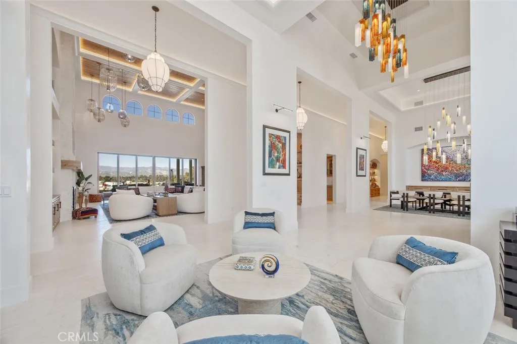 You are cordially invited to experience The Estate at Crestviewan architectural masterpiece long admired and beautifully completed in 2025. This stunning single-story view property offers breathtaking vistas and exceptional design. The grand foyer impresses with Turkish white limestone floors, Venetian plaster walls, and a multi-tiered chandelier. The great room boasts soaring 26 ceilings, disappearing 20 nano doors, and a limestone fireplace, seamlessly blending indoor and outdoor living. The turret-shaped living room stuns with 12 windows and a quartzite fireplace, while the dining room offers a built-in buffet and statement lighting. The gourmet kitchen features 156 ceilings, knotty alder cabinetry, dual navy-stained islands, quartzite countertops, and top-tier appliances. A circular breakfast nook and peninsula with seating enhance casual dining. A prep kitchen, Butlers Pantry, and hidden pantry provide added convenience. The wine room showcases backlit gemstone slabs, knotty alder racks, and a 70-bottle fridge. The 50 gallery hallway is an architectural masterpiece, leading to the dramatic powder room with Venetian plaster and crystal pendant lights. The theater offers tiered seating, a 140 screen, and a full bar, while the study is a refined retreat with a quartzite fireplace and French doors to a private patio. The laundry and mudroom add functionality with ample storage. Three secondary bedrooms, each featuring custom finishes and en-suite baths. Bedroom 3, currently a gym, boasts pool and mountain views. The West Hallway, adorned with Venetian plaster and a custom