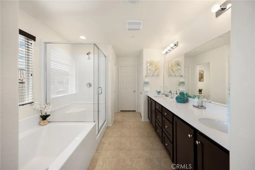 ***PRICE IMPROVEMENT*** PAID OFF SOLAR!!! NO HOA!!! Come one and all to see this fabulous home with the perfect floor plan with plenty of room . The large kitchen is the heart of the home with a walk in pantry, lots of storage and a large granite island that is perfect to gather around and is open to the great room. One en-suite bedroom perfect for guests or multigenerational living downstairs. There is also a half bath located by the great room. The upstairs has a great loft area for entertaining. The large master suite has a deep soaking tub, separate shower, large vanity with double sinks, a separate water closet, also a generous walk-in closet in the bath area. Another large bedroom with a walk-in closet and an office at the end of the hall with yet another walk-in closet The laundry room is conveniently located upstairs as well. Just down the street is a fun park with a playground, an enclosed dog park for your fur babies, also a basketball court! Low maintenance front and back yard. Ideally located near the 15 and 210 freeways for an easy commute. NO HOA and SOLAR IS PAID OFF!! Come and see, you will fall in love!