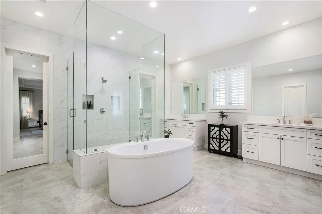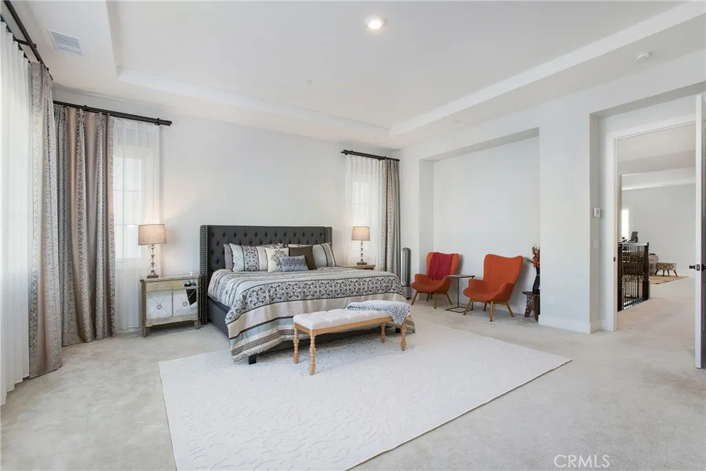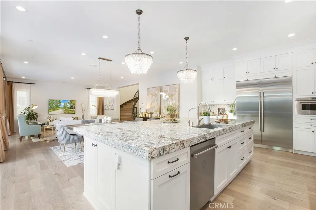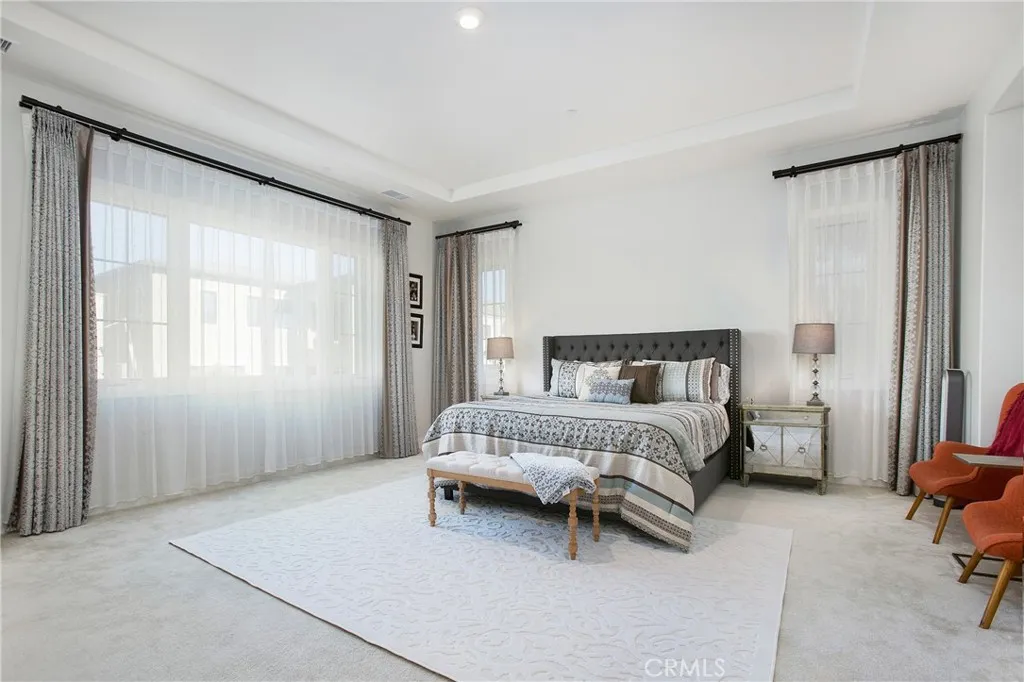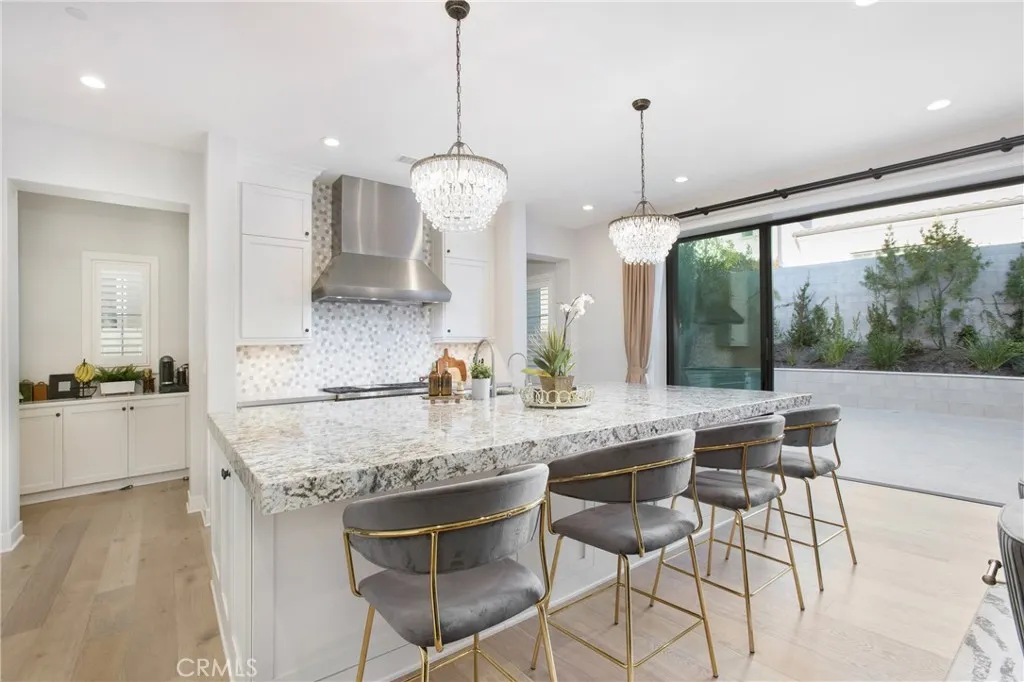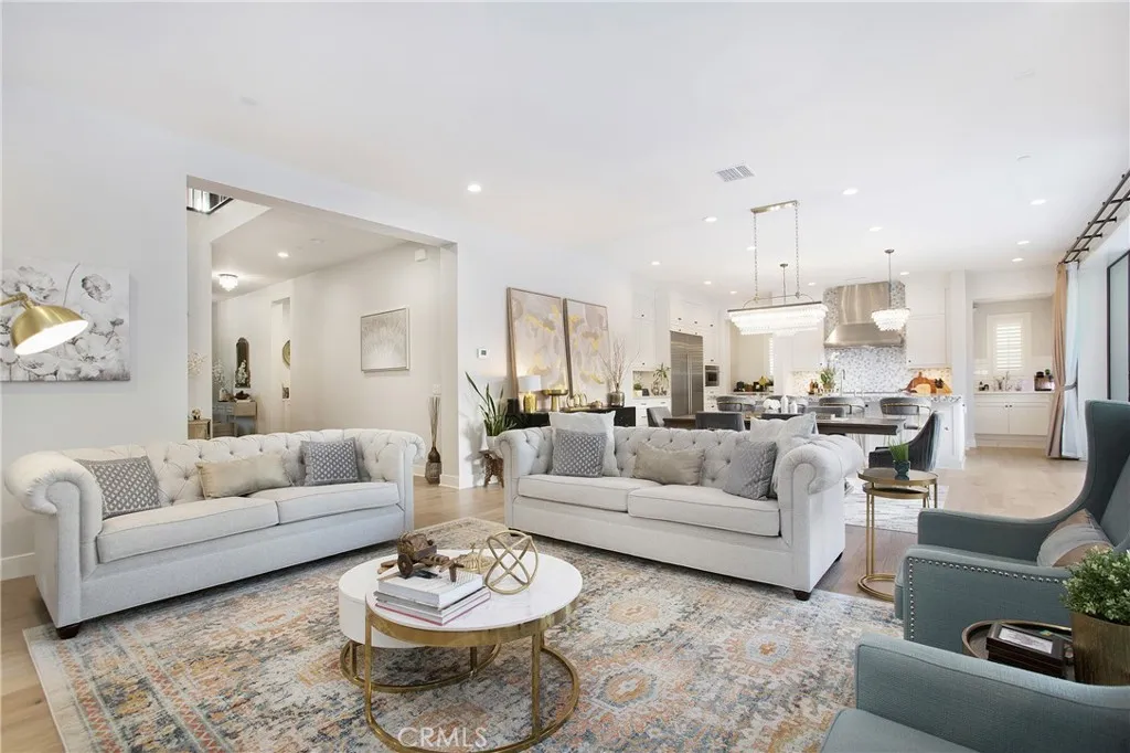 Adjusted Price! Unbeatable value for this stunning property. This luxury open-concept home is located within the 24-hour gated community of Irvine Altair, a resort-style home built by Toll Brothers. This stunning residence features 5 bedrooms, 5 baths, and a bright, open floor plan designed for modern comfort and highly coveted style. From the moment you walk in, soaring ceilings, custom light fixtures, and a dramatic formal dining area create a warm, upscale welcome. Recessed LED lighting throughout adds a soft, sophisticated glow, while rich hardwood floors and coffered ceilings bring character and charm to every corner. The gourmet kitchen is a true showstopper, with a blend of sleek quartz and granite countertops, a massive center island, stainless steel appliances, and soft-close cabinetry. Just beyond, a walk-in pantry doubles as a second kitchen for prepperfect for entertaining or keeping your main space effortlessly pristine. Natural light fills the living areas through thoughtfully placed windows that strike the perfect balance between brightness and privacy. Open the sliding glass doors to a covered loggia ideal for outdoor dining, casual lounging, or hosting under the stars. Upstairs, your private retreat awaits. The luxurious primary suite features dual walk-in closets, a cozy reading nook, and a spa-style bathroom with soaking tub, glass-enclosed shower, and dual vanities. A main-floor bedroom with its own full bath is perfect for multigenerational living or visiting guests, while a dedicated home office offers peace and productivity. The upstairs laundry room