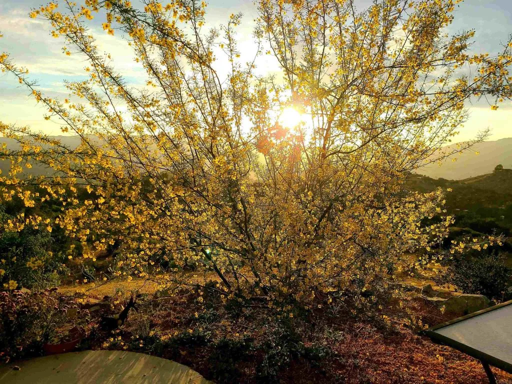 A secluded retreat on 8.45 acres of usable landscape in De Luz, where sustainability meets breathtaking vistas. Tucked away in a private setting, this extraordinary property offers a rare combination of privacy, natural beauty, and eco-conscious design. A standout feature is the expansive 30 x 60 Quonset-style workshop, complete with a bathroom, providing versatility for work, creativity, or extended stays. The main residence built in 2016 is a thoughtfully crafted 1-bedroom, 1-bath gem with approximately 500 sq ft of interior living space, complemented by a patio offering an additional 1,000 sq ft of flexible space. The homes elevated positioning captures sweeping panoramic views, while its design showcases non-toxic, sustainable materials including clay-based paints, recycled denim insulation, VOC-free wood sealant, bamboo flooring, and artistically detailed concrete floors with custom etching and mosaic tile accents. Inside, soaring 12-ft ceilings and strategically placed windows fill the space with natural light and a welcoming sense of openness. Ceiling fans, an infrared heating system, and the natural positioning of the home ensure comfort year-round. The fully fenced large dog enclosure, offers a secure space for pets, while a whole-house filtration system provides fresh, clean water. The property operates on solar power with battery back-up and does have an agricultural electric meter for low-cost electricity, and water is sourced from FPUD. Outdoor amenities include an outdoor shower, laundry area, RV/camper parking with a carport, and a second shower tucked into a