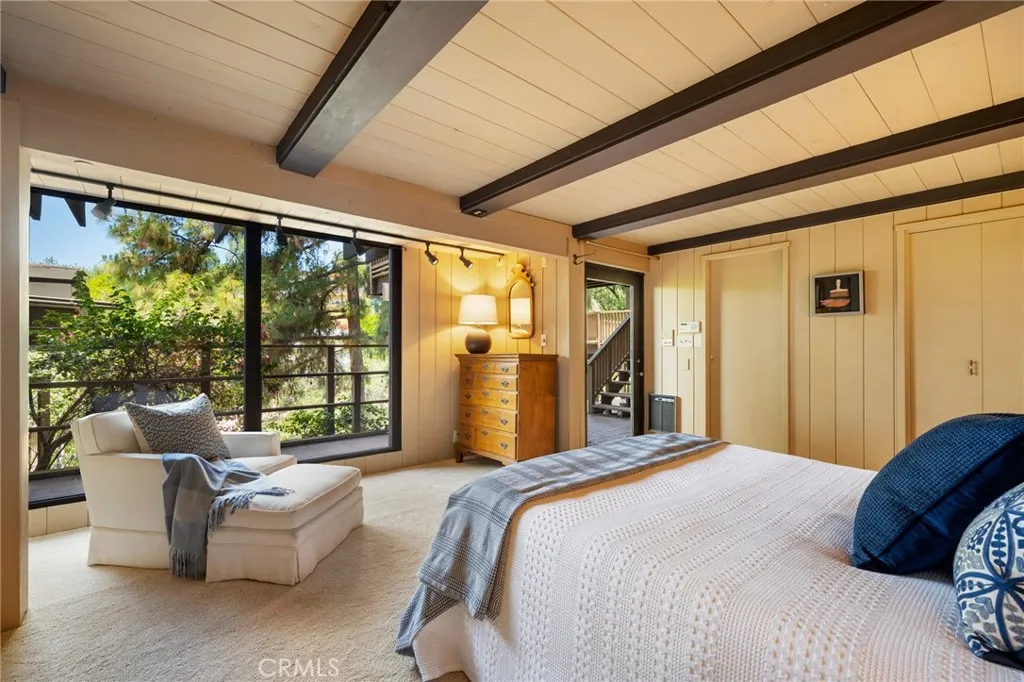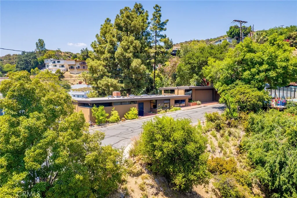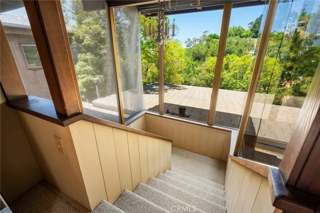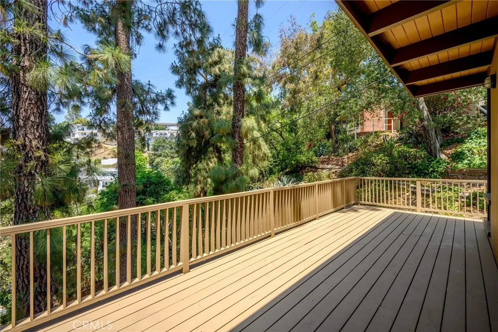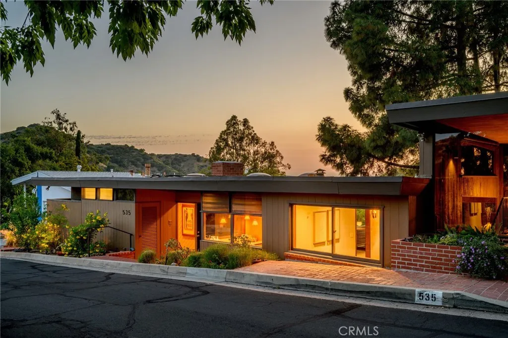 Mid-Century Modern 5-Bedroom, 5-Bathroom Home with Unmatched Views. Nestled atop Glenoaks Canyon, 535 Suncourt Terrace is a rare mid-century modern home offering approximately 3,841 square feet of thoughtfully designed living space (per taped measurements; title shows 2,015 square feet). Inspired by the celebrated architectural principles of Richard Neutra, this home exemplifies mid-century design with its clean lines, strong connection to nature, and abundant natural light. Situated on a quiet cul-de-sac, the home enjoys exceptional privacy and reduced street congestion. The light-filled interior welcomes you into the spacious living room  featuring a classic mid-century fireplace, and an inviting family room. Expansive walls of glass frame sweeping panoramic views of downtown Glendale and the serene canyon beyond, allowing the natural beauty outside to become an integral part of everyday living. The home captures canyon views to the east and breathtaking views of the City of Glendale to the west, offering both lush sunrise vistas and dazzling sunset panoramas, a rare and extraordinary combination. Multiple spacious decks and a lower yard area provide versatile outdoor living and entertaining options. The large family room, previously used as a recording studio, offers flexible space that could serve as a library, media room, or additional family area. The kitchen opens to a bright breakfast area, making it an ideal gathering spot for casual meals or morning coffee with a view. Five well-proportioned bedrooms and five bathrooms provide flexibility for family living, entert