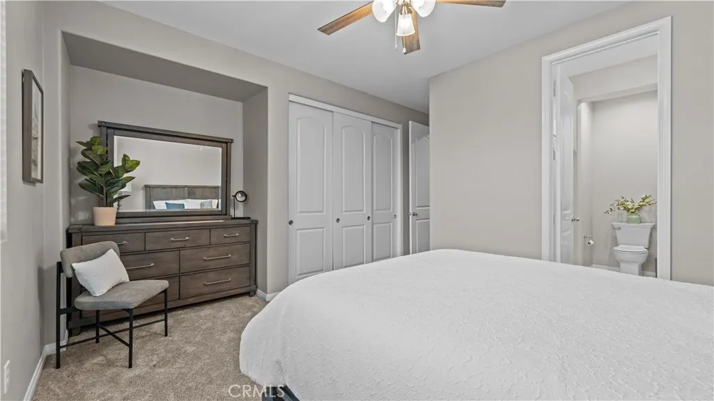 Welcome to this exquisite Craftsman style estate in the well desired College park Community of Chino. Boasting over 4200 square feet of living space. This 5 bedroom, 3 full bath and 1 1/2 bath residence is a harmonious blend of classic charm and modern luxury. The living area downstairs features gorgeous coffered ceilings for an elegant finish. There is a library area downstairs making it perfect to conduct business as a home office. The large and open chefs kitchen area is another inviting feature for those who want to entertain with an oversized island and a breakfast bar that can be fit for large gatherings. The butlers pantry is a wonderful addition! Discover timeless elegance in every detail, from the handcrafted woodwork to the gourmet kitchen. There is one bedroom downstairs with a full bathroom suite, and three upstairs with one primary bedroom suite. The primary bedroom suite has a sizable walk-in closet with a full size bath tub and shower area along with double sink counters. The loft area upstairs can be used for a home theater or a multipurpose area. Nestled on a sprawling lot exceeding 10,000 sq ft, the home features meticulous craftsmanship, spacious interiors, and a seamless fusion of indoor and outdoor living. Backyard, which is ideal for fruit trees and various plants, should you desire, is accessible with a patio door from the living room. The patio area makes it perfect as a serving point to host gatherings for family and friends with its mature trees offering privacy. Beyond its elegant confines, residents enjoy access to several community amenities tha