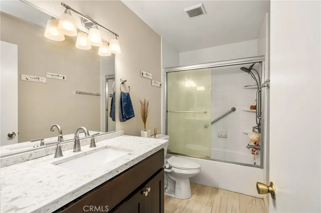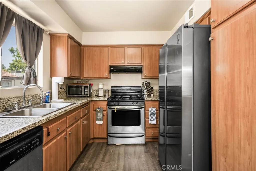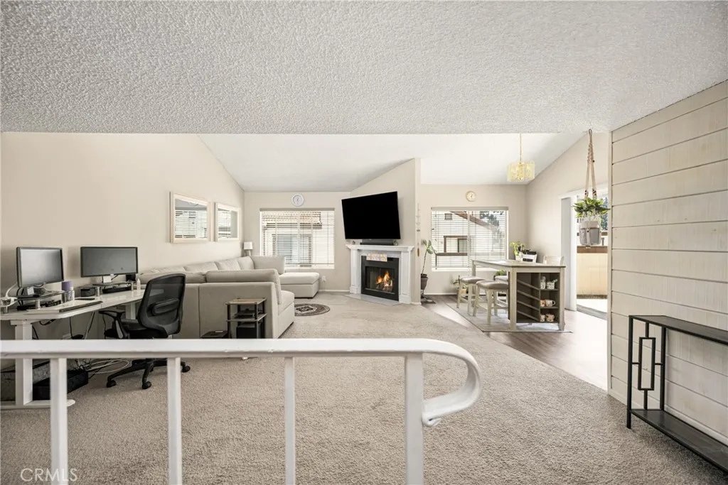 BACK TO ACTIVE ON THE MARKET and Now (FHA APPROVED), YOU MUST SEE THIS VERY DESIRABLE 2Br 2Ba END UNIT CONDOMINIUM WITH A 2 CAR ATTACHED GARAGE In The GATED CIMARRON OAKS IV CONDOMINIUM COMMUNITY, With Built In Storage Shelves and Laundry Hook Ups In The Garage, Direct Access To The Upstairs Open Concept Living Room, Wood Burning Fireplace and also a Ribbon Window That Brings in the Natural Sun Light Brightening The Vaulted Ceiling and Livingroom, Dining Area and Kitchen With Laminate Flooring, Granite Counter Tops, Stainless Steel Sink and Stainless Steel Appliances Adjacent To The Sliding Glass Door Leading To The BALCONY, With MOST ELEMENTS BEING BRAND NEW FROM RECENT REPAIRS, COMPLETED on Oct. 17, 2025, For BBQ's and Entertaining While Overlooking The Community and Guest Parking Area. Upstairs, You'll Also Find the Primary Bedroom and (3/4) Bathroom With a Tile Shower Including a Granite Sink Top. Full Bathroom With Tub and Granite Sink Top in The Hallway Between The 2nd Bedroom Which Is located at The Opposite End of the Hallway. The Neighborhood Features a Community Pool and Spa, Tennis Court, Green Belt Park Area for Relaxing in the Shade, Picnicking, Walking Your Dog(s) and Also a Play Area and Double Slide For The Kids. This Cimarron Oaks IV Condominium Community Is Located Between The 60 and 10 Frwy's, Near Shopping, Schools and Restaurants as Well.