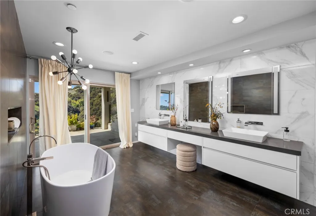 Welcome to 2637 N Mountain, a custom architectural gem in Claremonts prestigious Claraboya community. This stunning 2007-built home has been extensively upgraded with high-end designer finishes, offering panoramic views of the mountains, valley, and city lights. Spanning 3,260 sq ft, the home features a modern open layout filled with natural light, floor-to-ceiling Milgard windows, imported Italian marble, and dazzling Tiffany crystal chandeliers. The chefs kitchen boasts Thermador appliances and opens to the family room with seamless indoor-outdoor flowperfect for entertaining or peaceful retreats. The luxurious primary suite occupies the entire lower level and includes a private bar lounge, dual walk-in closets, heated bathroom floors, and Robern smart mirrors for a refined, resort-like experience. Sitting on a 20,000+ sq ft lot, this home offers both privacy and potentialjust minutes from The Webb Schools, Claremont Colleges, and Claremont Village. Rarely does a turnkey view home of this caliber come to marketdont miss this opportunity.