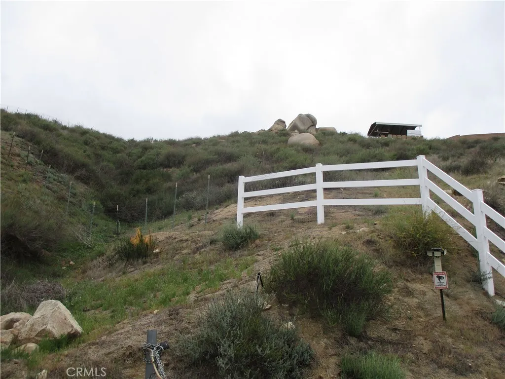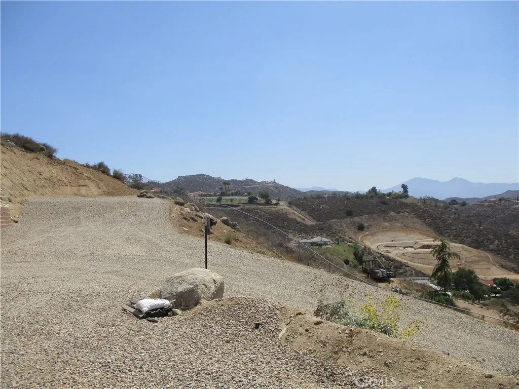 Breathtaking view 2.5 acres building lot. Panoramic view of Lake Mathews, mountains and valleys. You can see for miles. The view is approximately 300 degrees of unobstructed view. This fabulous view lot is ahead of many of the lots for sale, because of the work done by seller. Permits are granted, filled and signed off. This makes months of waiting and work done by seller that would be saved over unimproved lots. Definitely something to consider when planning to build. The lot grading plan and house pad have finalized approval by Riverside County. Water is connected with water meter. Electricity is ready to pull, next to property. The retaining wall is permitted. There is fire truck knockout. At the top of the lot is a metal carport. The lot is completely fenced with wire fencing and white vinyl fencing at front gate entrance. All the hard work is done! This lot is ready to build!