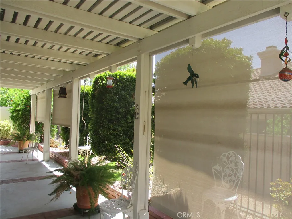Beautiful Turnkey East Facing Home in The Colony a 55 plus Gated Community. Enter the 2 BD 2.5 Ba Home through your own gated courtyard. Step into the home through the formal living room area with a den office to the left, with elegant built in bookshelves. Notice the beautiful blonde wood floors. The dining, kitchen and great room area are located in the back of the home with a gorgeous marble fireplace. The kitchen is equipped with an island and gas cook top, and adorned with granite counter tops. Plenty of counter and cupboard space for chef's needs! The Ensuite is located towards the back of the home adorned with a Cove wall and windows for additional natural light. The Ensuite has a walk in closet with a skylight. The guest bedroom is located in the front of the home. Off the Great room is the entrance to the backyard patio area adorned by a wood covered area great to keep the summer sun and fall rain off while entertaining. Conveniently, there is Two car garage with an additional GOLF CART GARAGE. This home is one to put on your list to view!
