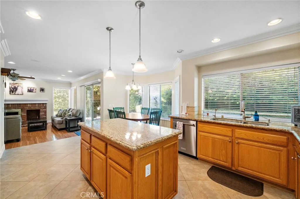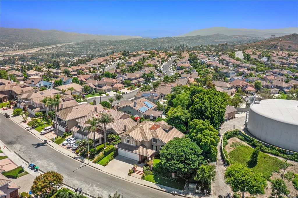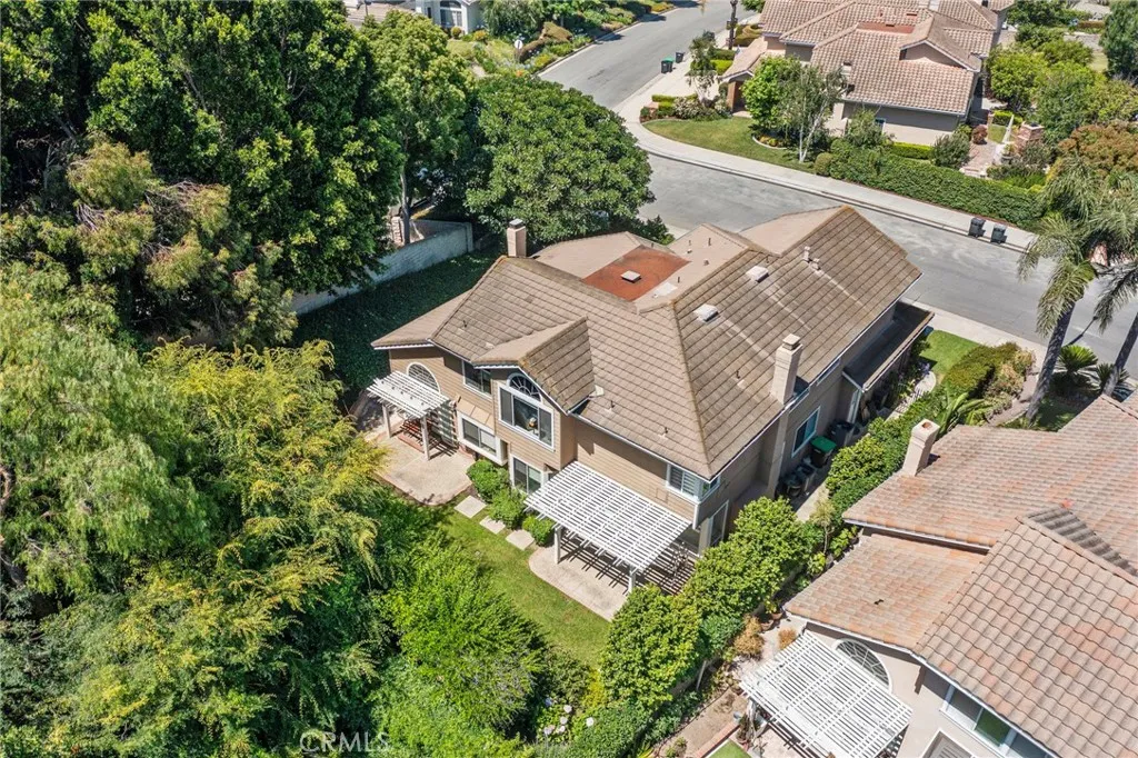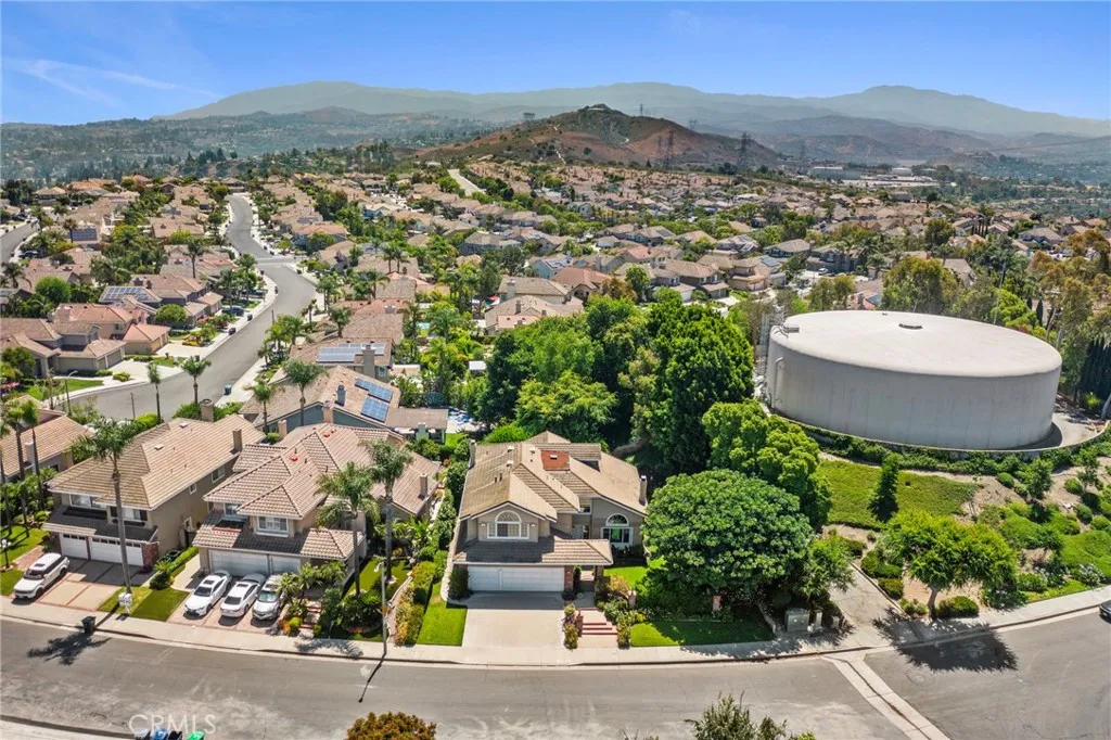 Nestled in the prestigious Belmont Estates community, this beautifully updated 5-bedroom, 3-bathroom residence offers over 3,300 square feet of refined living space. A formal tiled entry leads to a spacious living room with a stately fireplace and an elegant dining room ideal for entertaining. The expansive family room with a brick fireplace and wet bar opens to a well-appointed kitchen featuring granite countertops, double ovens, a center island, and a sunny dining nook overlooking the lush backyard. A desirable main-level bedroom and full bath provide the perfect setup for guests or multi-generational living. Upstairs, the grand primary suite features a walk-in closet, dual vanities with granite countertops, an oversized walk-in shower, and a relaxing Jacuzzi tub with city light views. Two additional bedrooms share a well-sized bath with dual sinks and a tub/shower combination. A large upstairs bonus room offers flexible space for a media room, playroom, or home office. The beautifully landscaped backyard features two covered patios and mature greenery, ideal for outdoor entertaining. Additional highlights include a spacious indoor laundry room with sink and cabinetry and brand-new carpet throughout. Located in the hills of Orange, this home combines comfort, space, and timeless appeal in a highly sought-after gated enclave