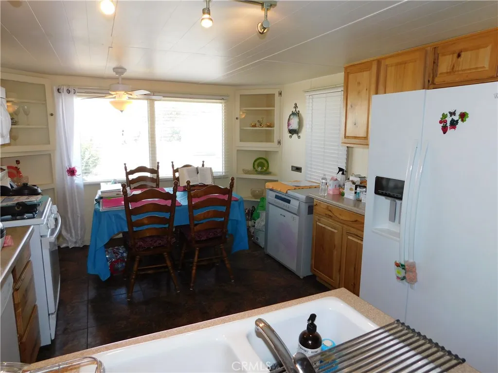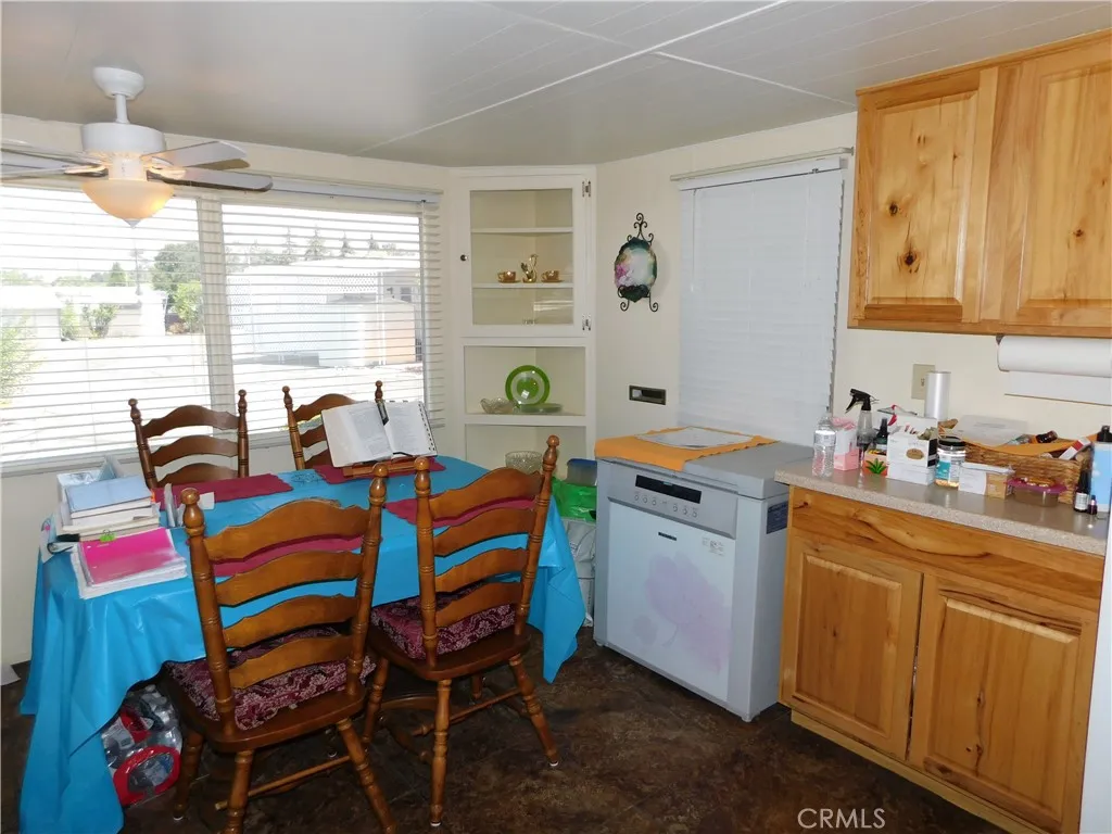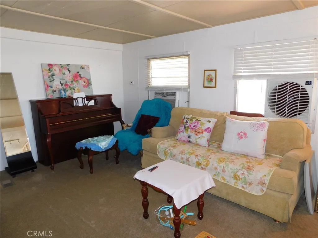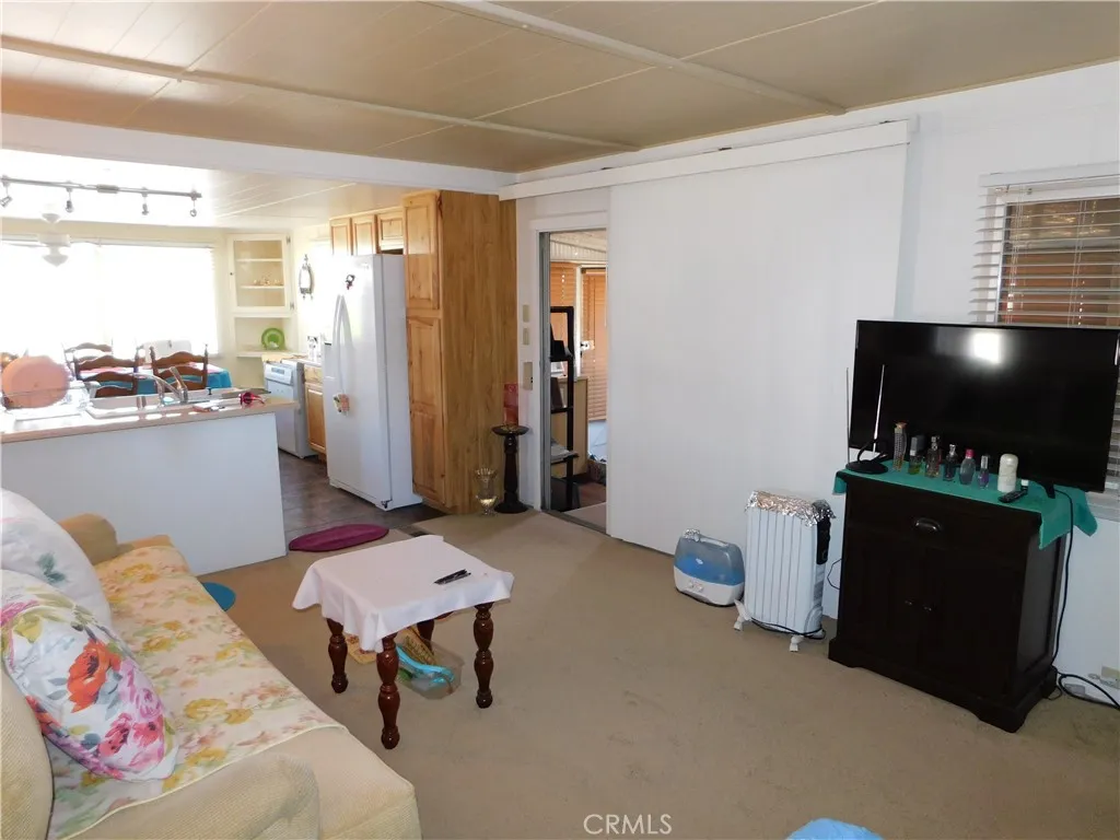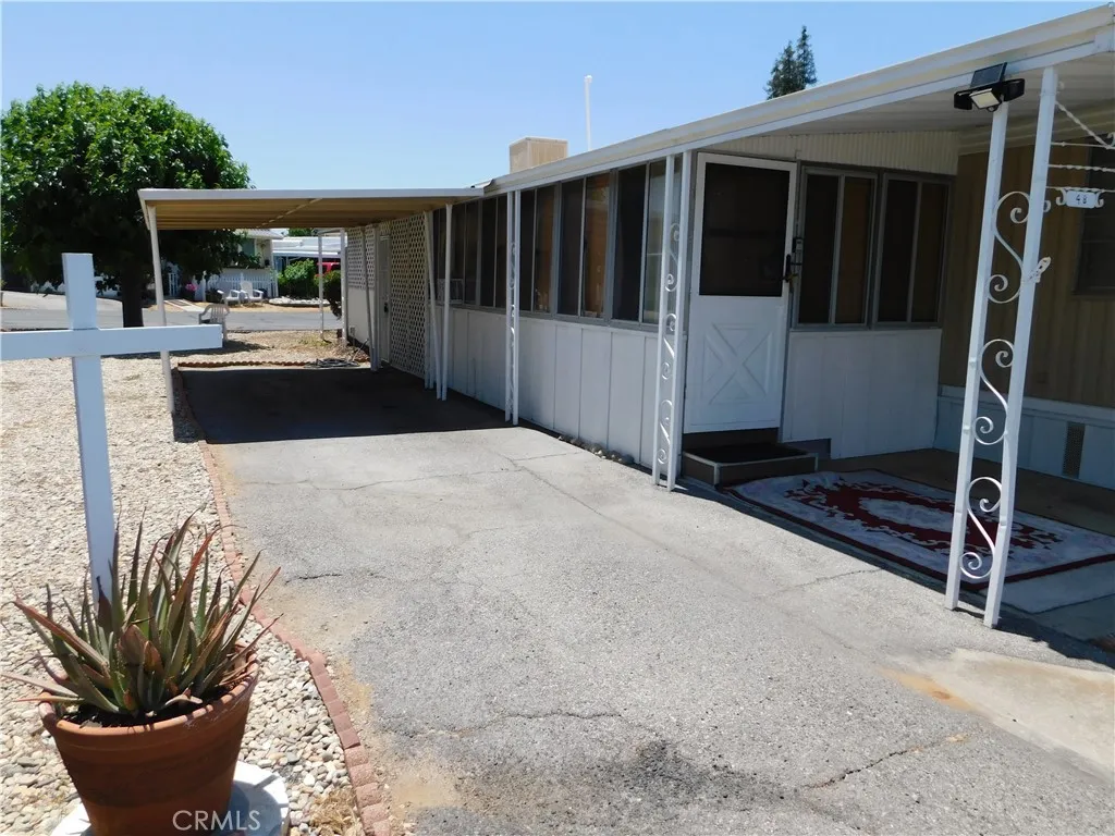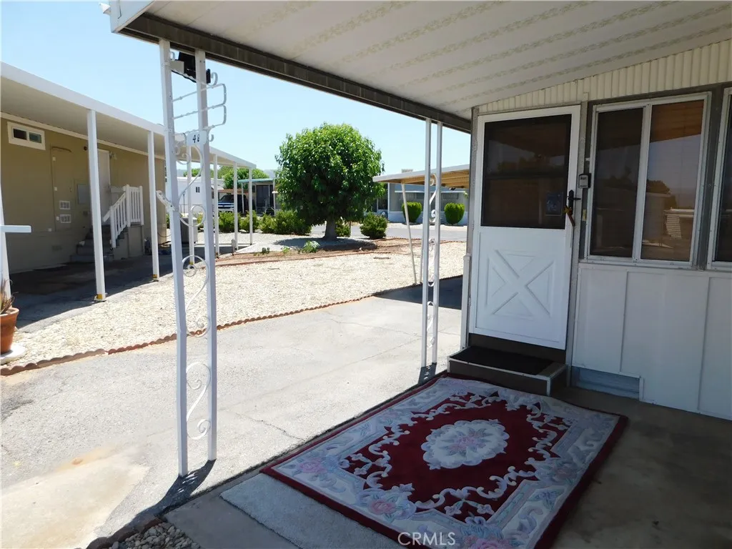 ~Beautiful home, situated at the end of a cul-de-sac, located in Yucaipa's highly desirable 55+ community, Carriage Trade Manor!~Low space rent...Only $420!~Pride of ownership shows throughout with features including: New plumbing throughout the home within last two years, freshly painted exterior, and newer evaporative cooler in living room!~When you come in the front door, you'll find a huge California room with vinyl flooring, blinds for privacy, and endless opportunities for usage, whether it's a gym, office space, or storage!~Spacious and welcoming living room, which offers both an evaporative cooler and wall/window AC unit, is attached to California room through sliding glass doors!~Living room open to the bright and upgraded kitchen, which also offers enough space for a full-size dining room!~Newer appliances include fridge, dishwasher, free-standing gas stove/oven and built-in microwave!~Updated wood cabinets/drawers for all your storage needs!~Plenty of counter space!~Dining room offers more built-in storage and beautiful mountain views!~Queen size primary bedroom with ceiling fan, an abundant amount of built-in closet space, and newer wall/window AC unit!~Newer nest thermostat for furnace!~Full bathroom provides plenty of storage/linen space, upgraded vanity/sink area, newer toilet, and tub/shower combo!~Spare bedroom is full size with ceiling fan, natural lighting, and built-in closet space!~Enclosed patio with security screen door hosts laundry area with included washer/dryer and storage shed!~2-3 car carport (1 covered space)!~Large low-maintenance lot, with pr