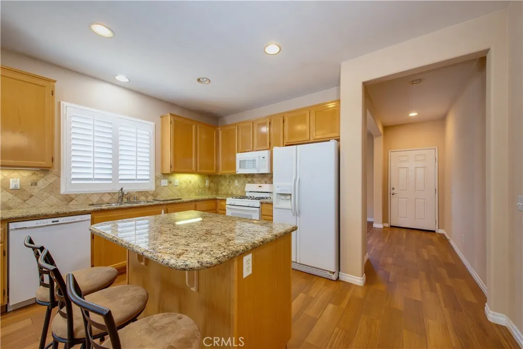 Highly upgraded and customized home with OWNED SOLAR at a premier "Over 55" gate guarded golf resort. Wood type tile and vinyl floors, plantation shutters and custom paint throughout. Great curb appeal with flagstone type accents and covered front porch. Enter into a flex room with leaded glass windows usable as a parlor, formal dining room, music room or office. Big kitchen featuring granite counters, gorgeous tile backsplashes, expanded island with breakfast bar, cabinets galore, large pantry, desk and dining area. The living/great room has a beautiful tile fireplace, ceiling fan, slider to the covered patio and entertainment niche. Big office/den convertible to a 3rd bedroom. Grand master suite bedroom with leaded glass window and ceiling fan. The master bath has a dual sink vanity, separate tub and shower, walk-in closet with mirrored doors, linen cabinet and a private commode. Generous sized guest bedroom with ceiling fan, mirrored closet doors and adjacent full bath. Laundry room washer and dryer are included. Covered patio, low maintenance gardens, wide side yard and vinyl fencing all around. 2-car finished garage with lots of high capacity overhead storage racks. HOA dues include front yard maintenance and trash pick-up. No Mello-Roos. Extraordinary community amenities include a 22,000 sq. ft. clubhouse with immense auditorium with indoor and outdoor stages, dance floors and commercial kitchen. Media/card room, multi-purpose rooms, state-of-the art fitness center, library, computer center and billiard parlor. Tropical pool and spa. BBQ area set against a lovely moun