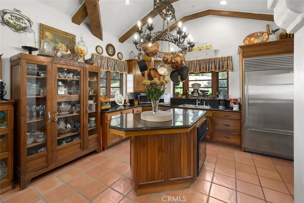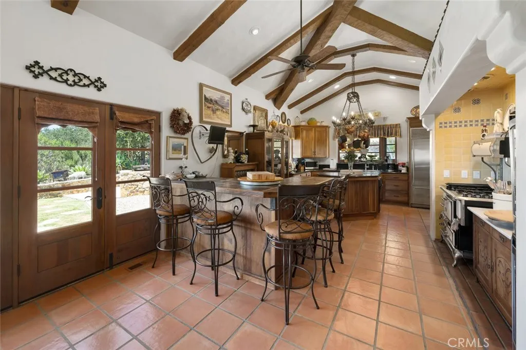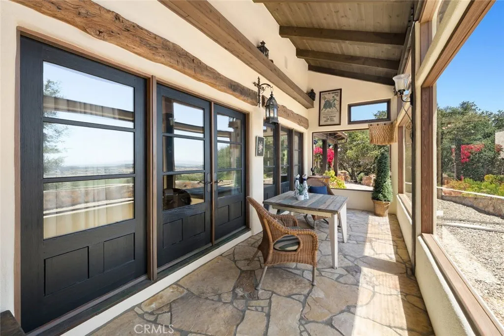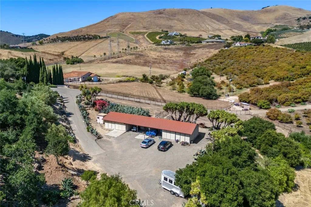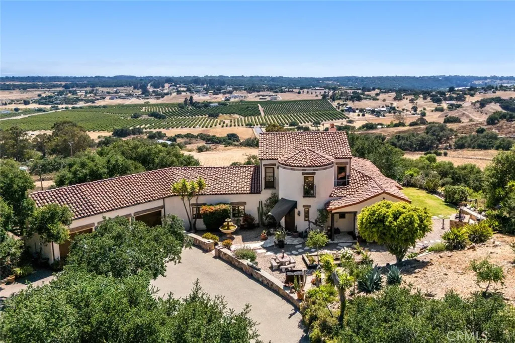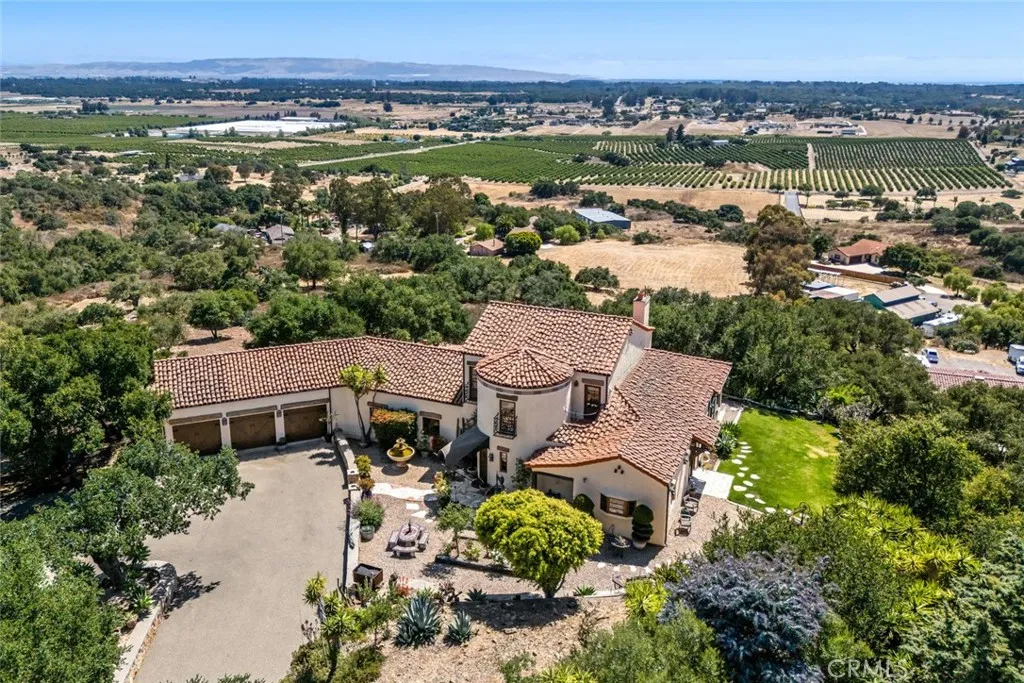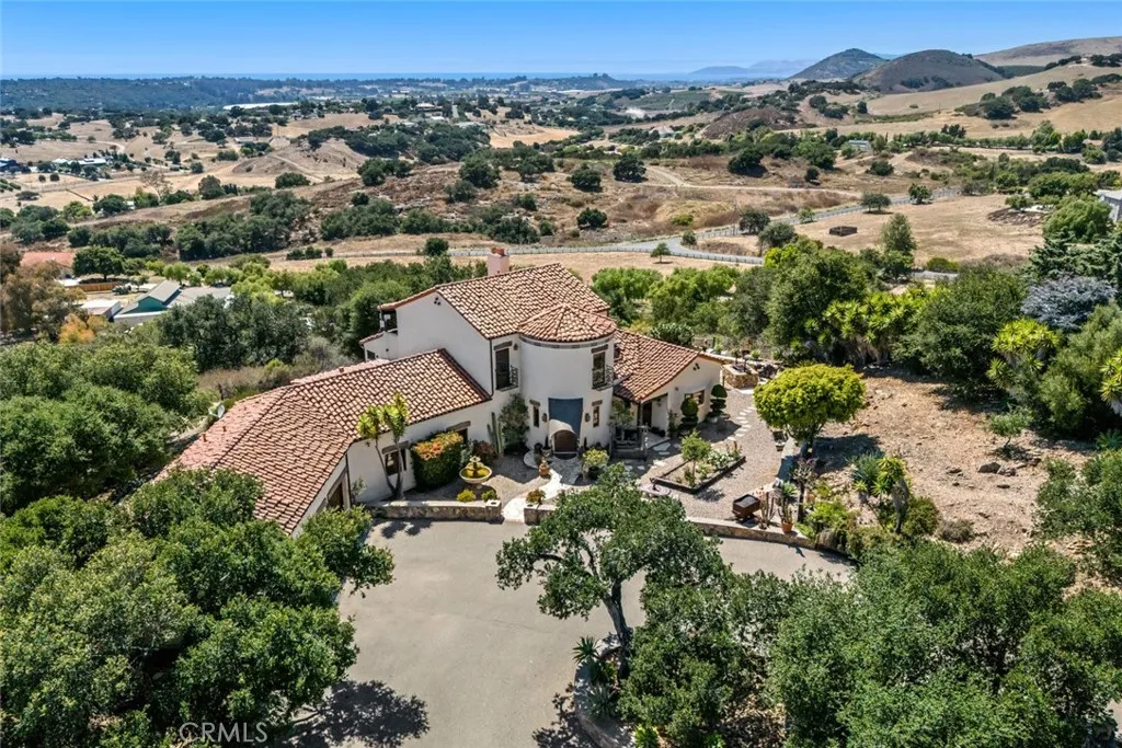 Beyond a private gated entrance, this extraordinary estate unfolds across 10.19 acres studded with avocado trees in the coveted Nipomo East region. Evoking the soul of California's rancho heritage, the property blends Spanish revival architecture with equestrian elegance, offering an exceptional retreat defined by craftsmanship and timeless design. As you pass a classic barn and pastures with welded oil pipe fencing, the estate reveals itself through a graceful circular driveleading to an attached three-car garage and additional space thoughtfully designed for RV accommodation. A flagstone and brick walkway leads you to an impressive 8 foot mesquite and copper front door and custom copper canopy, setting the tone for the residence within. Spanish tile floors, soaring beamed ceilings, and meticulous copper and ironwork welcome you into a space where artistry meets serenity. The main living area, anchored by a statement fireplace, invites intimate gatherings or quiet moments of reflection. Adjacent, the kitchen balances vintage charm and modern function, featuring bar seating, a generous island, full pantry, wine cellar with antique doors, and a striking vintage Elmira stove and ovena true homage to tradition. Flowing seamlessly from the dining room, the backyard unfolds into a lush landscape with a signature Santa Maria-style BBQ and native plantings, designed for both celebration and repose. A sunroom offers a refined escape for year-round entertaining, with a fireplace for crisp mornings and double doors opening to breathtaking panoramas stretching to the distant Pacific.