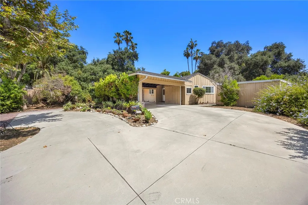 Tucked away toward the rear of a private, gated driveway shared with three other homes sits 3431 Huntington Drive -- part of East Pasadena's coveted Chapman Woods. This sprawling 1949 ranch home sits on nearly an acre and offers a rare opportunity to reimagine a classic within one of the area's most desirable neighborhoods. Set on an expansive lot amid mature trees and timeless estates, the residence exudes charm and architectural promise. With a long, flowing floorplan, original details, and a graceful footprint, this home awaits a discerning eye to restore and elevate it. As you approach the home, a circular driveway and carport draw your attention to the low-slung lines of the residence's iconic ranch architecture. Once inside, two bedrooms and a three-quarter guest bathroom are to your left at one end of the home, as well as a primary suite complete with separate tub and shower, and French door access to the backyard. The fourth bedroom and additional attached three-quarter bath are on the opposite side of the residence and adjacent to the kitchen, where you'll find a center island with butcher block top, sleek dark perimeter countertops, pendant lighting, light cabinetry and stainless-steel appliances. Connecting both ends of the home are a sitting room, central living area with fireplace, and a wall of windows -- a hallmark of ranch architecture -- which offers integration with the outdoors and looks out to the rear of the property. The backyard offers a perfect foundation for exceptional outdoor living and poolside relaxation, and is sure to yield a lush, park-like s
