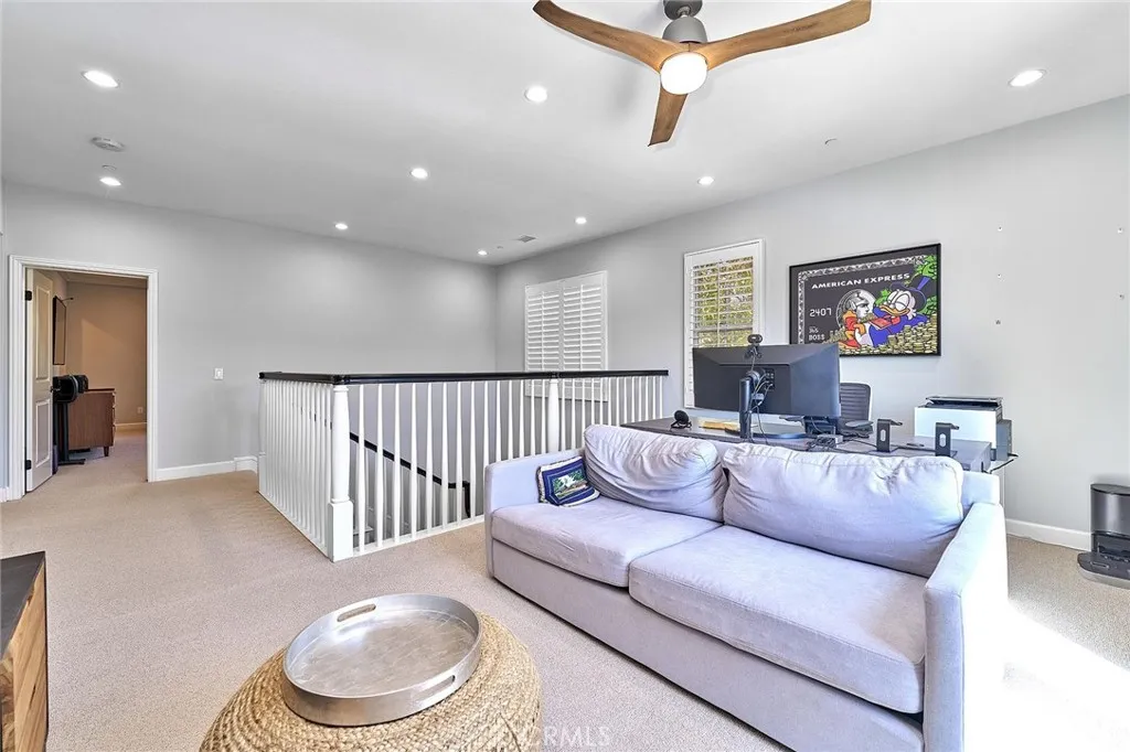 Premium CORNER LOT with a Huge backyard in Woodbury. Dont miss this stunning 4-bedroom, 4.5-bathroom Spanish-style House. This home features 9Kw Solar System, a New Water Treatment System, Wifi Light Switch & Dimmer, Epoxy Garage Floor and Upgraded Garage Cabinets, Hardwood flooring on the main level. The gourmet kitchen is equipped with custom marble countertops, a full backsplash, built-in refrigerator, and flows into a dining room with built-in cabinets and double wine fridges. The great room showcases a cozy fireplace, motorized roller shades, wood shutters, and elegant draperies. Upstairs, you'll find a spacious loft perfect for a home office, study area, or playroom. The primary suite offers dual vanities, a walk-in shower, soaking tub, and a custom-designed walk-in closet. Enjoy the tranquil backyard, with a California Room, built-in BBQ, and a pizza oven. Woodbury offers top-tier amenities including pools, spas, tennis and basketball courts, BBQ areas, parks, playgrounds, and scenic trails. Walking distance to award-winning Woodbury Elementary School, Woodbury Town Center, and several Montessori daycares. This home is 1 min walk to the community pool and spa.