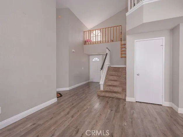 All age Menifee/Sun City Community. LOW Taxes and NO HOA. This wonderful 3-bedroom, 2.5 bathroom open floor plan home boasts high ceilings, tall windows & wide-open views to the south. Spacious entry is open to the living area with a wood-burning fireplace as its focal point and a guest powder room adjoins the entry. Large main floor master bedroom with a huge walk-in closet, ensuite bathroom, and a massive twelve-foot long double sink vanity. Enjoy two nice size upstairs bedrooms and a large upstairs bathroom. The kitchen is an open design and lots of cabinets with easy access to the living-dining areas. Enjoy the wide-open southerly view from the Epay wood deck that almost doubles the useable space in the backyard. Perfect home for those looking for an inexpensive option in a great location that allows you to customize to your needs.
