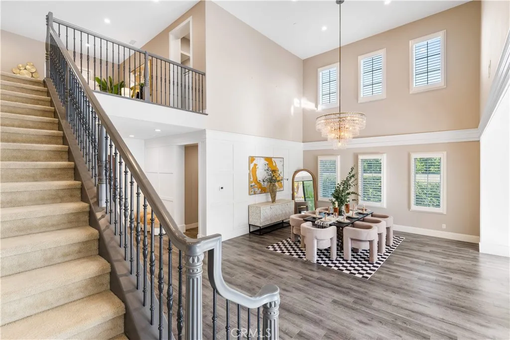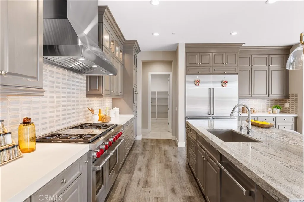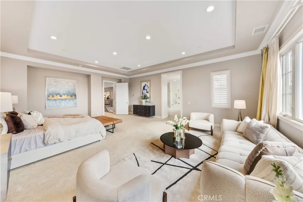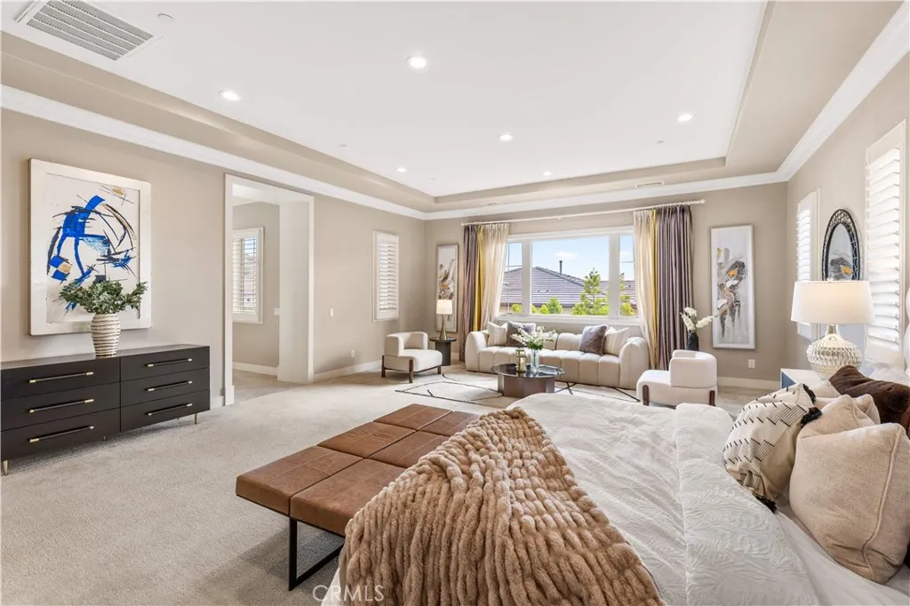 Discover exceptional design and functionality in this elegant Toll Brothers estate, located in the prestigious 24-hour guard-gated community of Altair Irvine. This thoughtfully upgraded 5-bedroom, 5.5-bathroom home offers approx. 5,340 square feet of refined living space on one of the most prominent lots on the street, offering impressive curb appeal and a wide frontage. A grand entry welcomes you into a light-filled interior with a seamless indoor-outdoor connection. The main level features an open-concept great room with expansive sliding glass doors and four convenient access points connecting the home to the yard, enhancing flow and flexibility. The gourmet kitchen is equipped with premium Wolf and Sub-Zero appliances, a walk-in pantry, and a large center island. A separate prep kitchen offers additional space for culinary needs, ideal for hosting or daily cooking routines. Enjoy your morning coffee in the dining area while taking in sweeping mountain views, setting a tranquil tone for the day. The professionally designed backyard includes a private putting green, a tranquil waterfall feature, and multiple areas for entertaining and relaxation. The soft water system and other thoughtful upgrades elevate everyday comfort. Upstairs, the luxurious primary suite boasts a spa-inspired bathroom with soaking tub, oversized shower, dual vanities, and walk-in closets. Three secondary ensuite bedrooms and a spacious loft complete the upper level. A main-floor guest suite provides added convenience. Residents of Altair enjoy access to world-class amenities including resort-style p