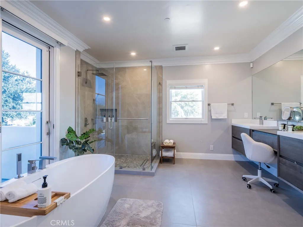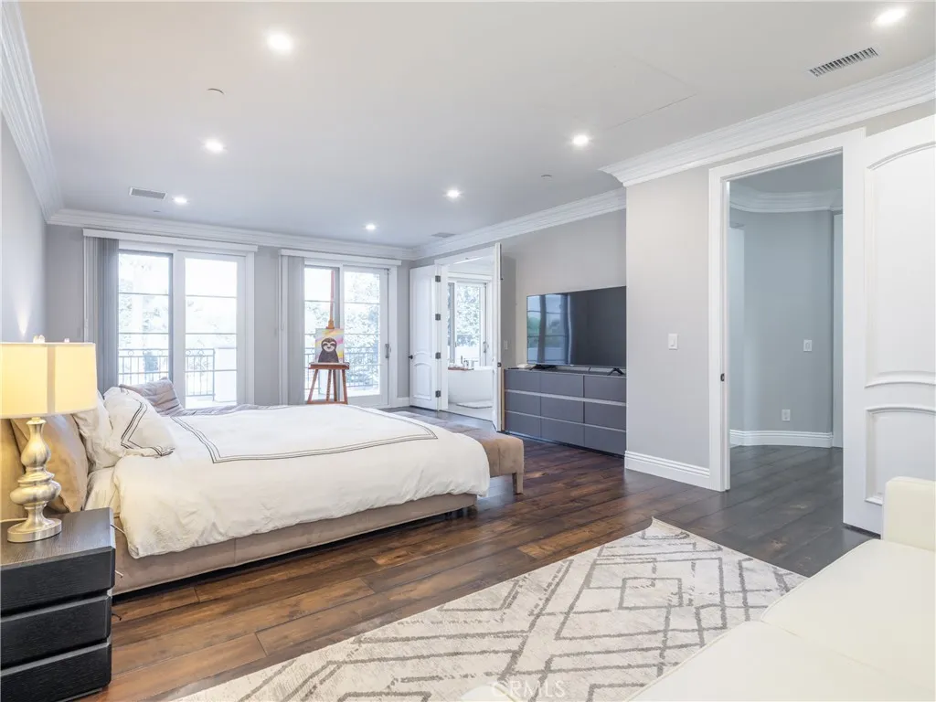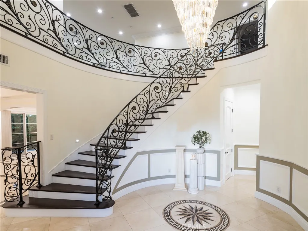 Situated in Arcadias desirable Mayflower Village, this elegant Mediterranean-style home sits behind its own automated front gate, offering both privacy and curb appeal. The layout features 6 en-suite bedrooms and a powder room, with two suites on the main levelone ideal for guests or extended family, and the other perfectly suited for use as a home office or study. A soaring two-story foyer opens to formal living and dining rooms, while the main kitchen includes a center island, walk-in pantry, breakfast area, and a separate wok kitchen for added flexibility. The family room with wet bar and wine fridge connects seamlessly to a covered patio and lush backyard, creating the perfect space for indoor-outdoor living. Additional highlights include a private home theater, an upstairs loft, and a luxurious primary suite with a private balcony offering beautiful mountain views, a sitting area, spa bath, and walk-in closet. A 3-car garage and well-planned layout make this home as functional as it is beautiful.