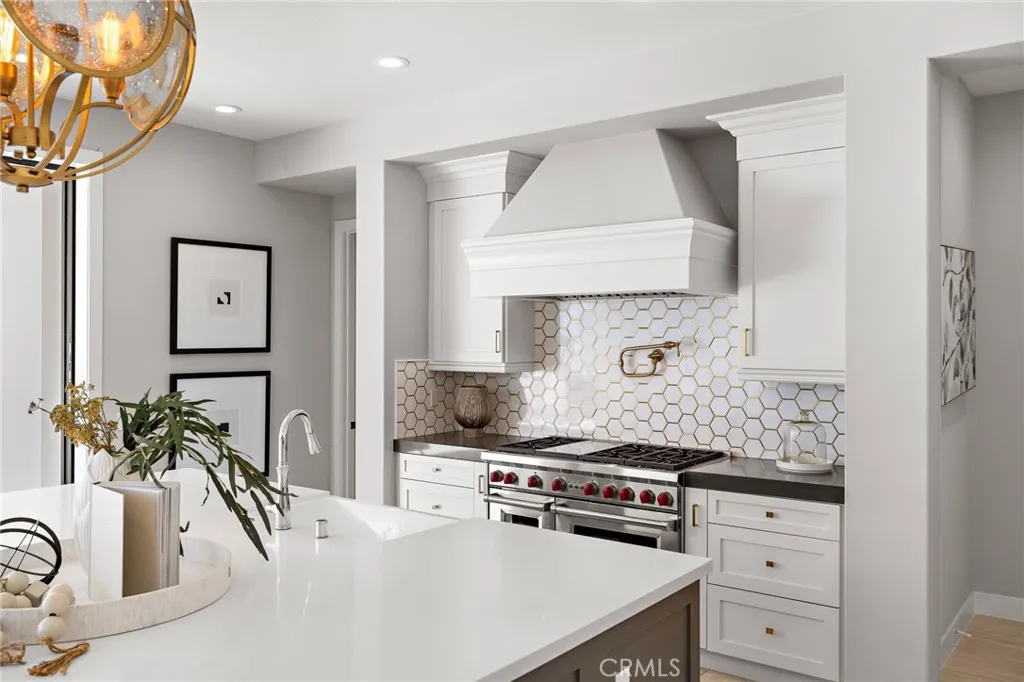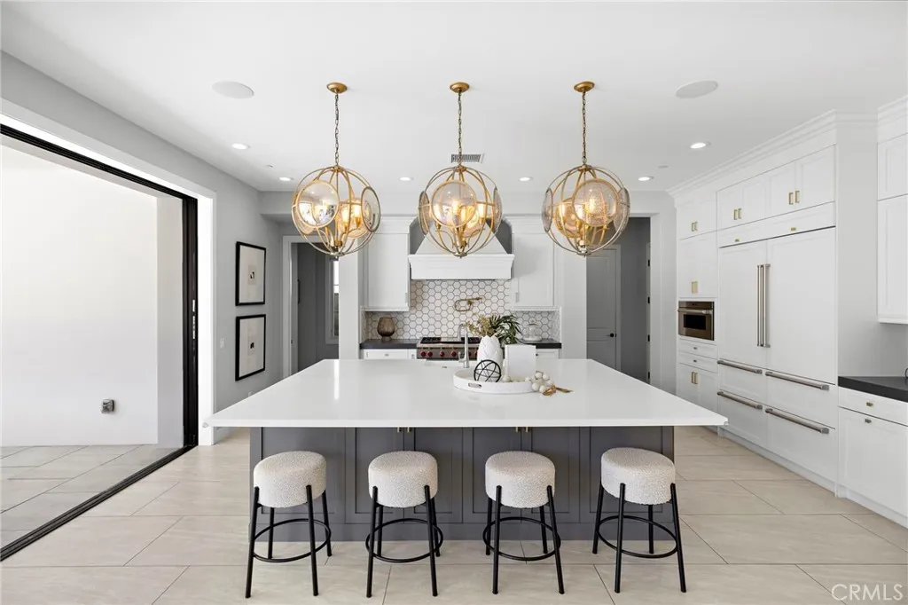 Welcome to this breathtaking Meridian Helios residence, a true work of art by the esteemed Toll Brothers. Nestled within the prestigious 24/7 guard-gated community of Altair Irvine, this elegant home features 6 bedrooms, 6.5 bathrooms, and approximately 4,500 square feet of thoughtfully designed living space on a beautifully landscaped 6,371 square foot lot. From the moment you enter, youre greeted by soaring ceilings and an expansive open-concept layout that radiates both sophistication and warmth. Designer upgrades throughout showcase a seamless balance of luxury and functionality. At the heart of the home lies a chefs dream kitchen with a massive center island, Sub-Zero side by side refrigerator & stacked freezers, Wolf range/stove, pot filler, wine fridge, and seamless flow into the spacious great room. Multi-paneled stacking pocket doors open wide to blur the line between indoor comfort and outdoor living. The main floor also includes a private ensuite bedroomperfect for guests or multigenerational livingand a double-door office offering quiet privacy for working from home. Upstairs, discover five additional ensuite bedrooms, including a serene primary suite with a sitting area, linear fireplace, oversized balcony with heater, dual walk-in closets, and a spa-inspired bath featuring natural white marble finishes throughout the floors, countertops, and expansive shower enclosure. A freestanding soaking tub and dual vanities complete this elegant retreat. Outside, the oversized entertainers yard is a private oasis with a California room, built-in heater, state-of-the-art