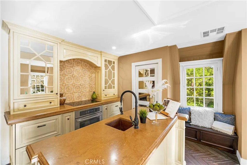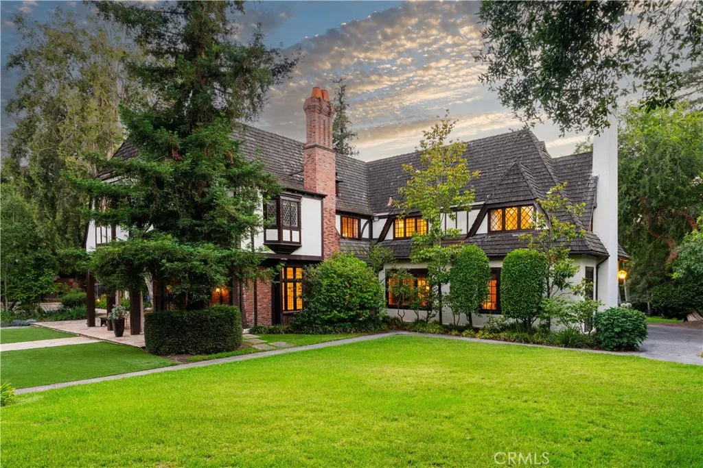 Welcome to one of Pasadenas most extraordinary legacy properties, an architectural masterpiece blending historic English Arts & Crafts design with thoughtful modern updates, nestled on over 3.5 acres of flat and gated grounds in the prestigious South Arroyo neighborhood of SW Pasadena. Originally built in 1915 by renowned architect Stiles O. Clements who designed the Hollywood Park Racetrack and Beverly Hills High School, this grand English Revival estate, also known as the Chandler House, was later expanded in 1931 by Kenneth A. Gordon and served as the 50th Annual Pasadena Showcase House of Design in 2014. With nearly 12,000 square feet of combined living space, including close to 10,000 square feet in the main residence and nearly 1,300 square feet in the restored two-story carriage house, this estate offers both grand scale and architectural integrity. The home underwent a meticulous, top-to-bottom restoration in 20212022, blending timeless craftsmanship with modern comfort and convenience. Inside the main house, the signature architectural details include a 25x40 redwood-paneled Great Room with hand-hewn beams, leaded glass windows, a massive fireplace, and oak floors. The home features 6 bedrooms and 7 bathrooms, with 4 en-suite bedrooms upstairs, as well as cozy family spaces, a TV lounge, a spacious laundry room, and a remodeled third-floor flex space. A stunning modern kitchen with Viking appliances, a breakfast area, and an adjacent formal dining room providing an excellent space for hosting gatherings, celebrations, and memorable holiday parties. The re-designed