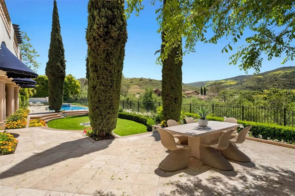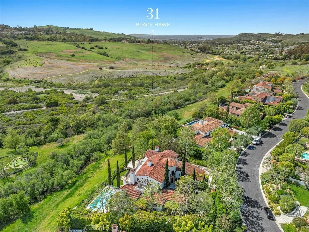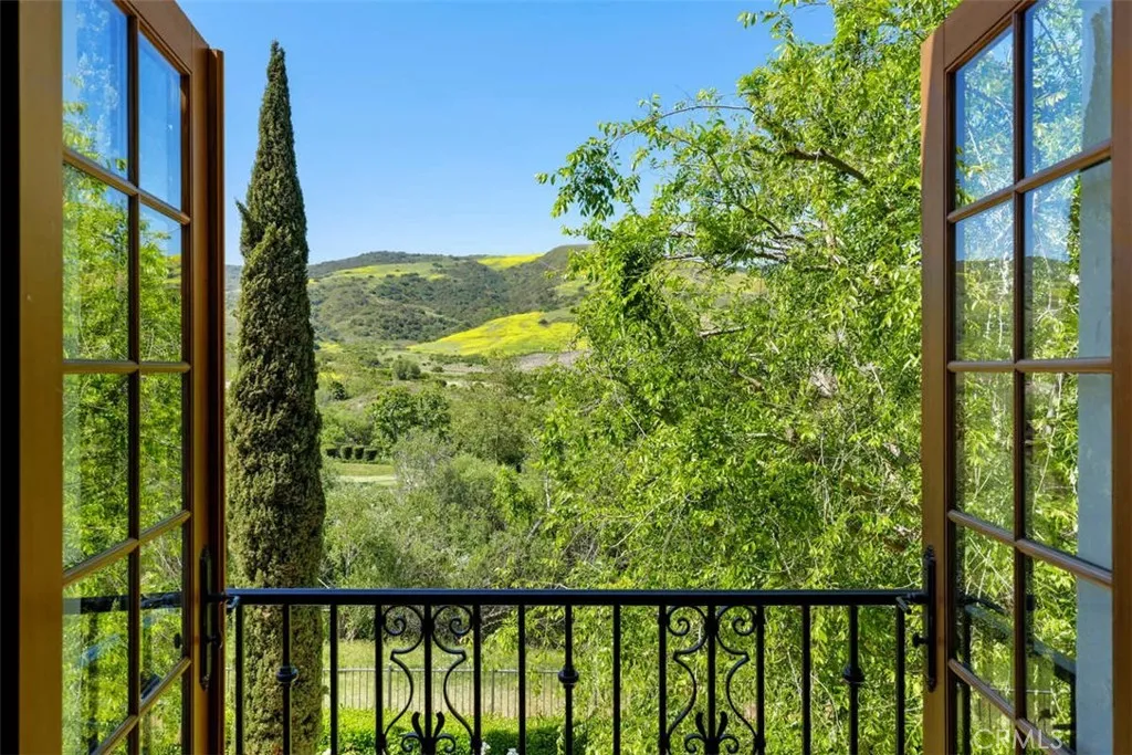Reminiscent of the timeless villas along the Mediterranean coast, this front-row custom estate in Shady Canyon has been beautifully renovated to blend classic architecture with sophisticated, modern living. Set against the breathtaking backdrop of Bommer Canyon, the home offers an incredible 200 feet of sweeping scenic views-creating a private sanctuary designed for refined living and grand entertaining. From the sparkling pool and spa to the lush emerald lawn and multiple al fresco dining areas, every outdoor space is designed for year-round enjoyment. Framed by forever views from nearly every vantage point, this residence invites you to exhale and stay awhile. Step inside to a dramatic double-height foyer where arched hallways and custom wrought-iron railings frame a graceful, curved staircase. Natural light floods the interiors, drawing the eye to garden views beyond and setting the tone for the elegance found throughout. Spanning approximately 7,746 square feet across three levels-with convenient elevator access-the 5-bedroom, 7-bath estate showcases a serene neutral palette and wide-plank European oak flooring, creating a sense of cohesion and effortless elegance. The newly remodeled open-concept kitchen is the heart of the home, featuring designer cabinetry, premium appliances, and a large center island. It opens seamlessly to the family room and out to the backyard, where glass doors invite in light and canyon views-perfect for indoor-outdoor living and family gatherings. Upstairs, three spacious bedrooms include a serene primary suite with a private terrace, sitting