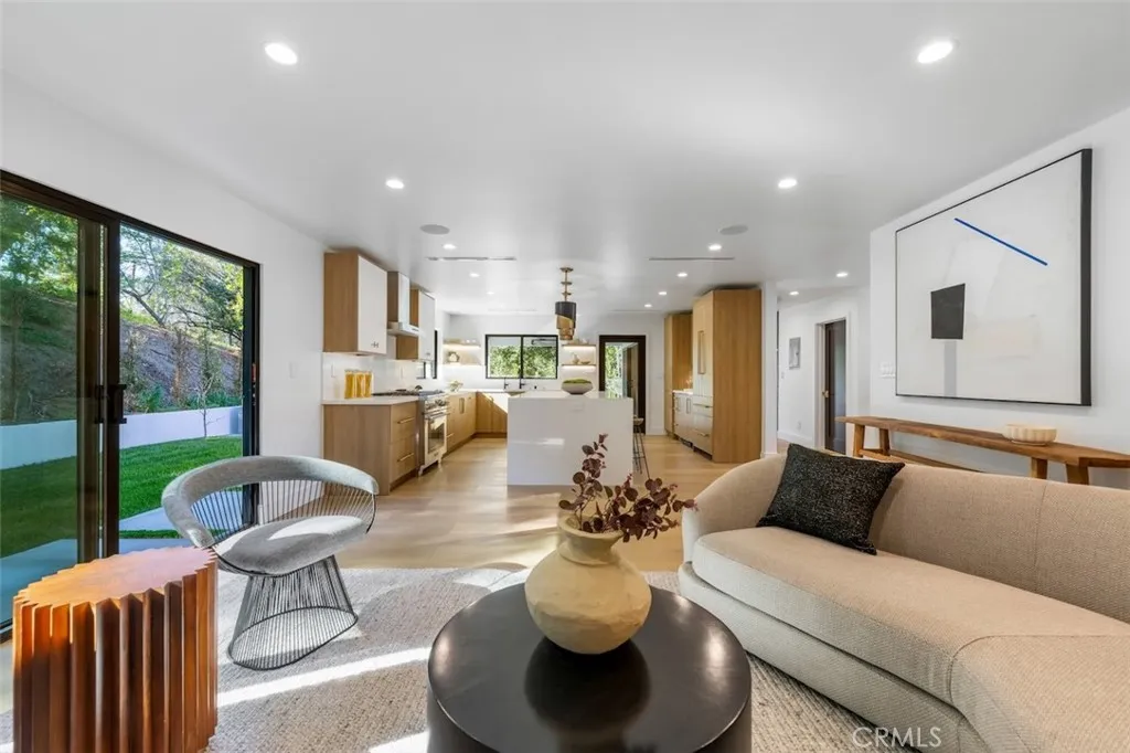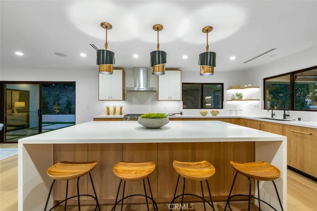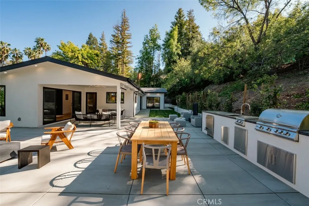 Welcome to Donna. A Thoughtfully Reimagined Hillside Retreat. Perched at the end of a peaceful cul-de-sac just one mile south of Ventura Boulevard, this stunning single-story home sits on an expansive 15,888 SqFt lot in one of Tarzanas most sought-after hillside pockets. Zoned RA-1 and originally built in 1956, the residence has been completely rebuilt and reimagined with over $1M in custom renovations- offering the perfect blend of timeless character and modern luxury. With undeniable curb appeal and elegant design, the home welcomes you through a bold custom steel entry door into a dramatic foyer with soaring ceilings and rich hardwood floors. The gourmet kitchen is the heart of the home, featuring Thermador appliances, custom cabinetry, and an oversized waterfall island- designed to balance style and function seamlessly. Ideal for both entertaining and everyday living, the open-concept layout flows effortlessly from the formal dining area to the spacious living and family rooms, all flooded with natural light and designed for connection and comfort. The primary suite is a true sanctuary, with vaulted ceilings, calming tones, a spa-inspired bath with a freestanding tub, and a generous walk-in closet. Additional bedrooms offer comfort and flexibility for families, while a private ensuite on the opposite end of the home is perfect for guests, a home office, or multi-generational living. Step outside to your private backyard oasis- complete with a heated covered patio, cozy fire pit, and plenty of space for both quiet mornings and vibrant gatherings under the stars. Located