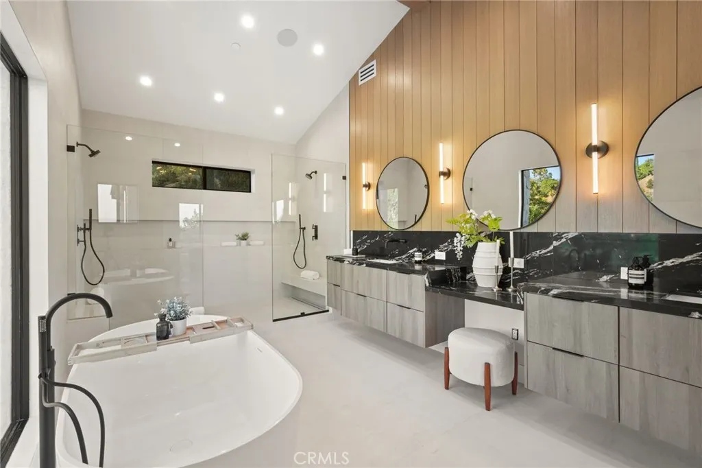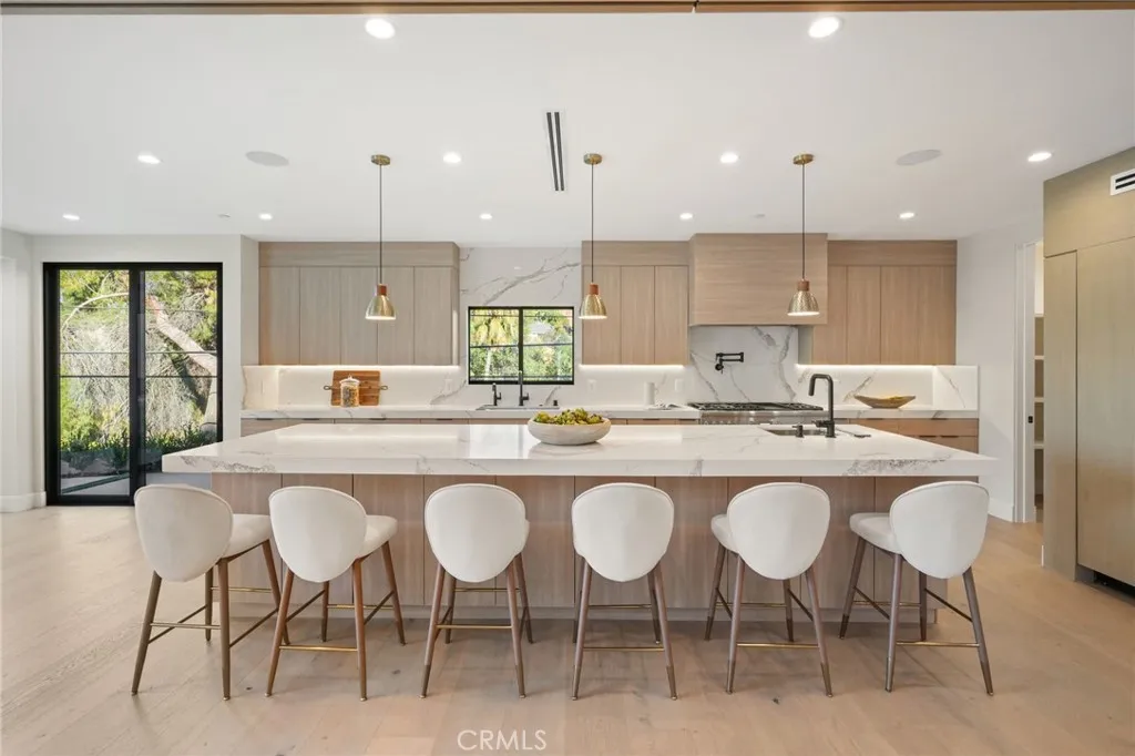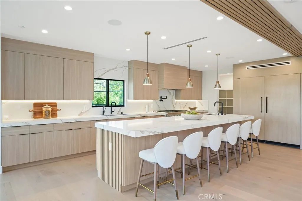 Views, Views, Views! Priced to sell! Welcome to the ultimate entertainers compoundtucked away behind a private driveway in the heart of Encino, just moments from Ventura Boulevard. This newly built 5-bedroom, 4.5-bath modern estate blends architectural elegance, curated designer finishes, and resort-style amenities to deliver an extraordinary living experience with both privacy and presence. Every detail radiates sophistication, from soaring ceilings and hand-applied plaster walls to rich stonework and expansive sliding doors that blur the line between indoors and out. The chefs kitchen boasts top-tier appliances, a custom-paneled refrigerator, and a seamless flow into the open living and dining areas. The backyard is a resort-inspired retreat: sparkling pool and spa with waterfall, mature olive trees, outdoor fireplace, and a full BBQ island with bar seating. Multiple outdoor spacesincluding two distinct backyard zones and a spacious side yardcreate endless possibilities for relaxation or entertaining. A detached ADU/pool house adds flexibility for guests, work, or creative pursuits. Upstairs, the primary suite offers a tranquil escape with private balconies, hillside views, dual spa-like bathrooms, and a grand walk-in closet. Top it off with a showstopping rooftop deck, the perfect setting for panoramic views and golden-hour sunsets. South of the Boulevard and moments from Encinos premier dining and shopping, this thoughtfully designed home delivers a turnkey lifestyle in one of the Valleys most sought-after locations.