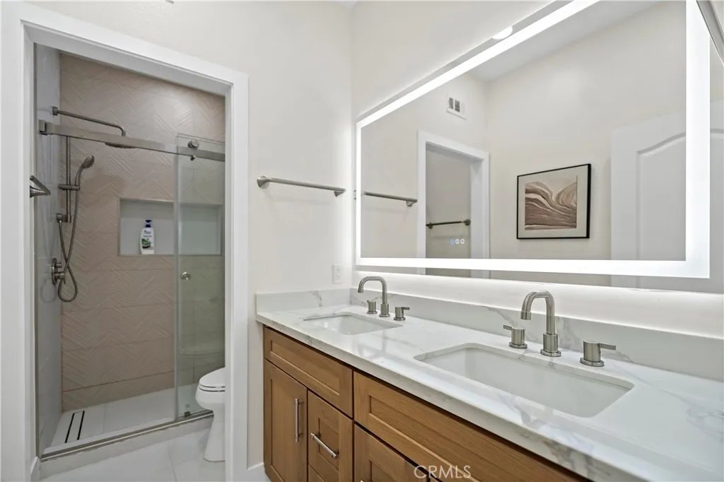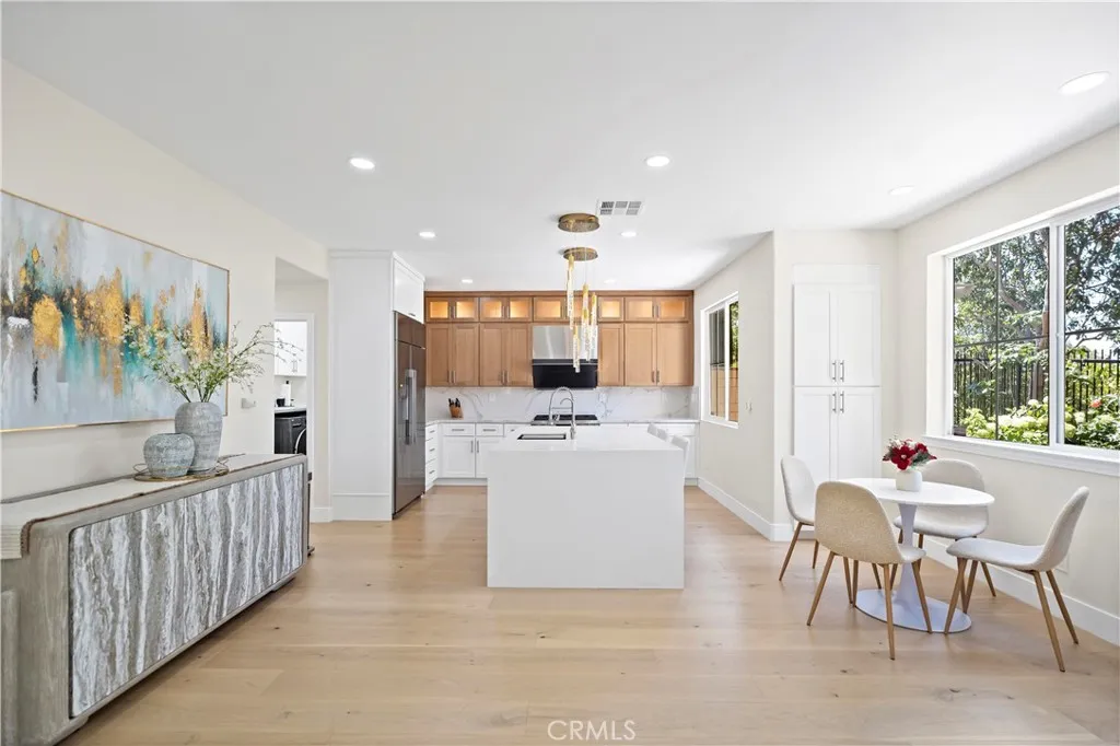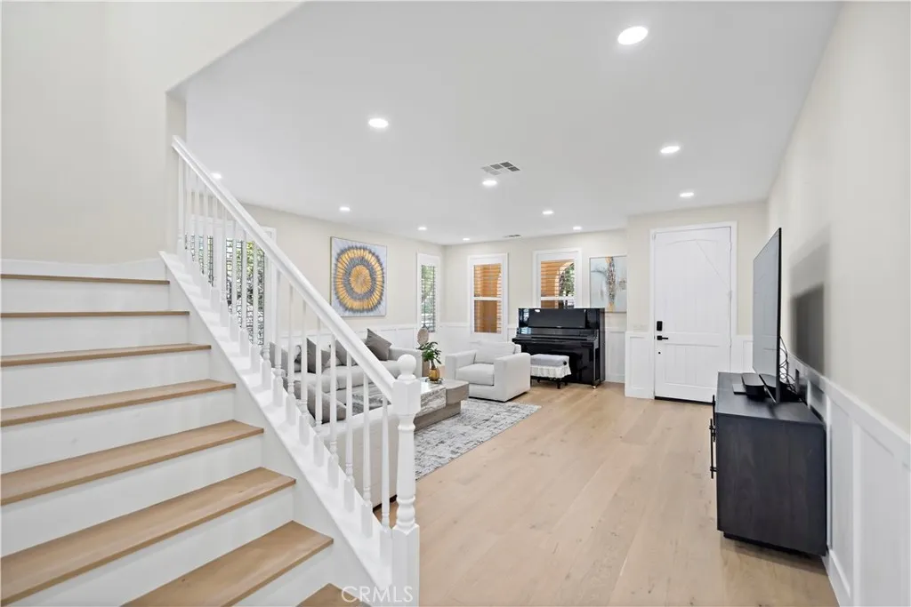 Commanding views, a prime corner lot, and timeless upgrades define this exceptional residence in Irvines highly coveted Quail Hill community. Feels like a model home. Completely renovated in 2024 and move-in ready, this 4-bedroom, 3.5-bathroom home spans approximately 2,655 square feet and sits on a spacious 5,541 square foot lot, offering privacy, sophistication, and an elevated lifestyle. From the moment you arrive, youre greeted by the striking curb appeal and panoramic city lights and mountain vistas. Step inside to discover a bright, open floor plan that blends modern elegance with everyday functionality. The main level showcases solid wood flooring throughout, custom wainscoting, high-end lighting fixtures, and beautifully coordinated finishes that evoke the feel of a model home. The spacious living and dining areas seamlessly connect to a thoughtfully designed chefs kitchen featuring premium cabinetry, and a large center island perfect for entertaining. Upstairs, the expansive primary suite offers a tranquil retreat with its own private balcony capturing stunning views to Orchard Hills, a custom walk-in closet with built-in organizers, dual vanities, an oversized walk-in shower, and a luxurious soaking tub. Three additional bedrooms and two baths provide versatility for family, guests, or home office needs. Enjoy the benefits of a corner lot oversized backyard with beautifully planted fruit trees, flowers, and extra space perfect for entertaining or hosting parties. Zoned for renowned University High School and located just steps from parks, and Alderwood Elementary,