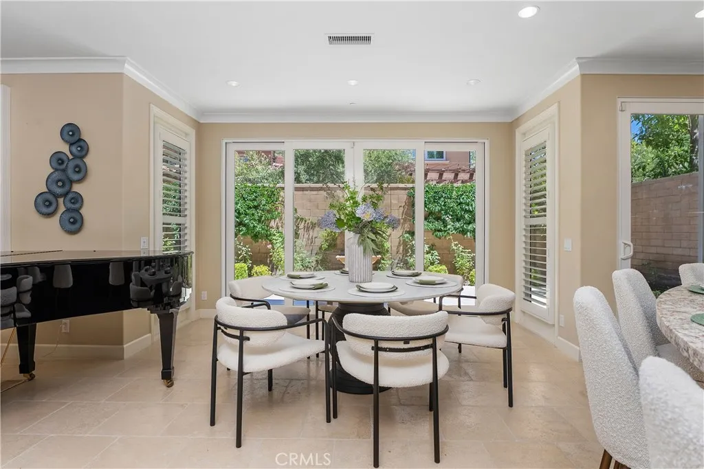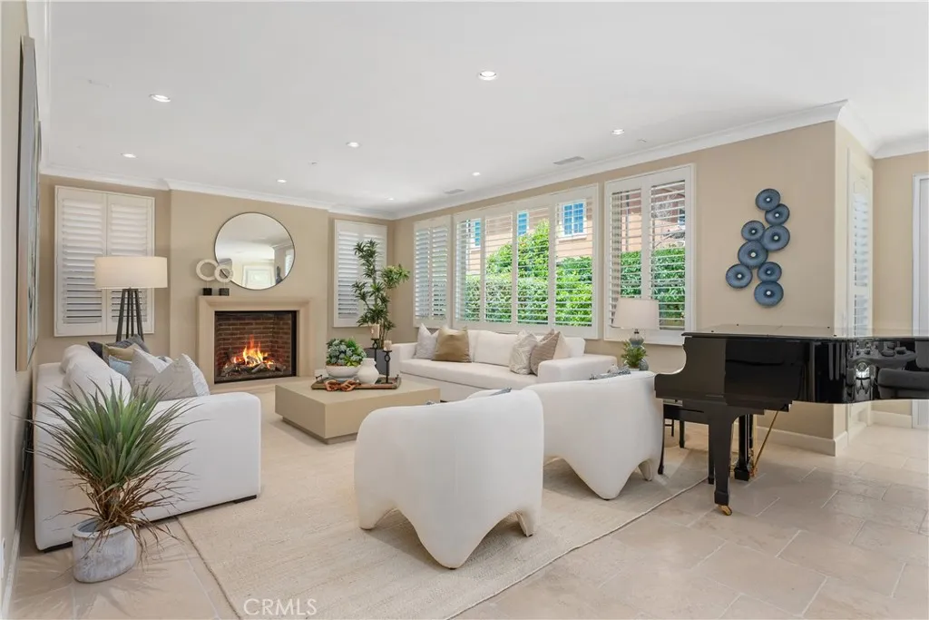 Discover this immaculately upgraded 4-bedroom, 4-bathroom residence ideally situated on a premium corner lot in the exclusive 24/7 guard-gated community of Laguna Altura. This coveted Cortona Plan 3 home offers an exceptional blend of timeless style, modern functionality, and refined comfortall set directly across from the community park, pool, and clubhouse. Designed with thoughtful attention to detail, the open-concept layout is bathed in natural light from sunrise to sunset, thanks to its optimal orientation and expansive windows. The main floor features a full bedroom and bathroom, perfect for hosting guests or accommodating multigenerational living needs. At the heart of the home, the gourmet kitchen is a true showpiecehighlighted by premium stainless steel appliances, an expansive center island, and luxurious Santa Cecilia granite countertops, all beautifully accented by a custom stone backsplash. Sophisticated interior touches include designer flooring, custom carpeting, and plantation shutters throughout. Enjoy seamless access to your private outdoor retreat - an expansive 4,446 sq ft backyard with elegant pavers and a tranquil water feature, ideal for al fresco dining, relaxation, or entertaining under the Southern California sun. Residents of Laguna Altura enjoy a resort-inspired lifestyle, with access to top-tier amenities including a pool, spa, clubhouse, BBQ area, scenic parks, and nature trails. With its unparalleled locationjust minutes from the 405, 5, and 133 freeways, John Wayne Airport, UCI, Laguna Beach, and world-class shopping and diningthis home offer