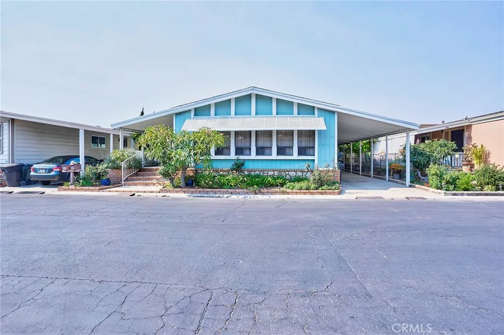 2074 sq ft, Triple-Wide Home, Quiet location across from the guest parking. One of the larger floor plans at the Prestigious Anaheim Shores Estates. This family park has large green belts and wider streets. The clubhouse amenities include a pool, spa, clubhouse with kitchen, card room, billiard room, multipurpose room, BBQ, and covered picnic area. The formal living room and formal dining room have beamed vaulted ceilings and a built-in China cabinet/hutch. The kitchen has lots of cabinets and counter space and is open to the formal dining room and family room. The family room has a slider to the patio. The master bedroom is huge with a double walk-in closet with mirror closet doors and another closet near the master bathroom. The AC/Furnace/oven, and roof have been replaced. Move-in condition. Centrally located to the 91 and 5 Freeways!