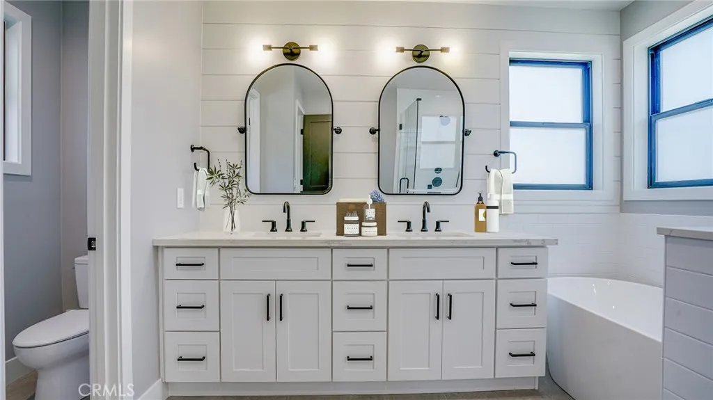 This absolutely stunning home is new construction that has just been completed! Built new from the ground up, this two story modern farmhouse is the perfect combination of prestige, beauty, and elegance! This 4 Bedroom 4 Bathroom house is simply gorgeous inside and out! Upon entering this house, you will be taken away by the extra tall ceilings, bedroom on the first floor with its own bathroom, half bathroom, and huge great room consisting of the Living Room with fireplace, dining room, and the kitchen. The kitchen is the highlight of this space with a huge island, high end appliances, and large walk-in pantry. The open stairs lead to a large open loft perfect for a home office, den, or sitting area. Once upstairs there are 2 more bedrooms, laundry room, large full bathroom, and the primary bedroom. This massive primary bedroom is an elegant space with a large walk-in closet, balcony for quiet time with a good book and cup of coffee, and the primary bathroom with walk-in shower and freestanding tub. The exterior is beautifully manicured with great curb appeal, and has a finished detached garage in the rear. This property is elegant, charming, and full of character and detail! The lot is almost 9,000 square feet, and consists of this beautiful home, detached garage, and LOTS of additional space for possibly a pool or maybe even an ADU! This is the third and final house in this development, and we saved the best for last! This house is nestled in between two other new house, and the new finished on this property really set it apart from the others! This property will not last