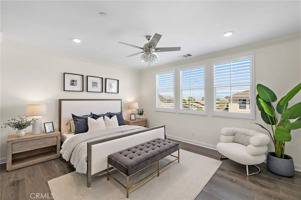 RARE OPPORTUNITY IN BEACON PARK Welcome to the most sought-after Plan 3 of the Larkspur Collection, built by the renowned Lennar Homes a true gem in the heart of Irvines Great Park Neighborhood. Situated on an exceptionally quiet, low-density street with only 7 homes, including several single-story residences, this home enjoys enhanced privacy, lush landscaping, and a serene atmosphere rarely found in the area. Just steps from the scenic Bosque Trail, this home offers immediate access to nature, community parks, and walking paths perfect for an active, family-oriented lifestyle. Plus, a new Asian supermarket is under construction nearby, promising even more convenience in the near future. Home Highlights: 5 Bedrooms | 5.5 Bathrooms | Approx. 3,250 Sq Ft | 2-Car Garage Dual Master Suites: One on the main level and one upstairs ideal for guests, in-laws, or multigenerational living All bedrooms feature en-suite bathrooms, ensuring ultimate comfort and privacy for every resident Open and airy great room with cozy fireplace and abundant natural light Gourmet chefs kitchen: Granite countertops, oversized center island with breakfast bar, three elegant pendant lights, built-in refrigerator, and an oversized walk-in pantry Upstairs primary suite with an expansive walk-in closet and a spa-inspired bathroom featuring an extra-large walk-in shower and romantic soaking tub Covered California Room with motorized sunshade perfect for indoor-outdoor living Thoughtfully upgraded throughout and in truly move-in ready condition Beautifully landscaped backyard designed for low m
