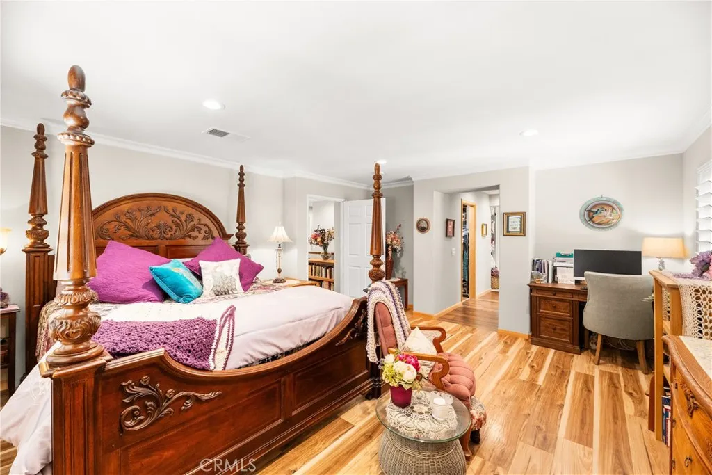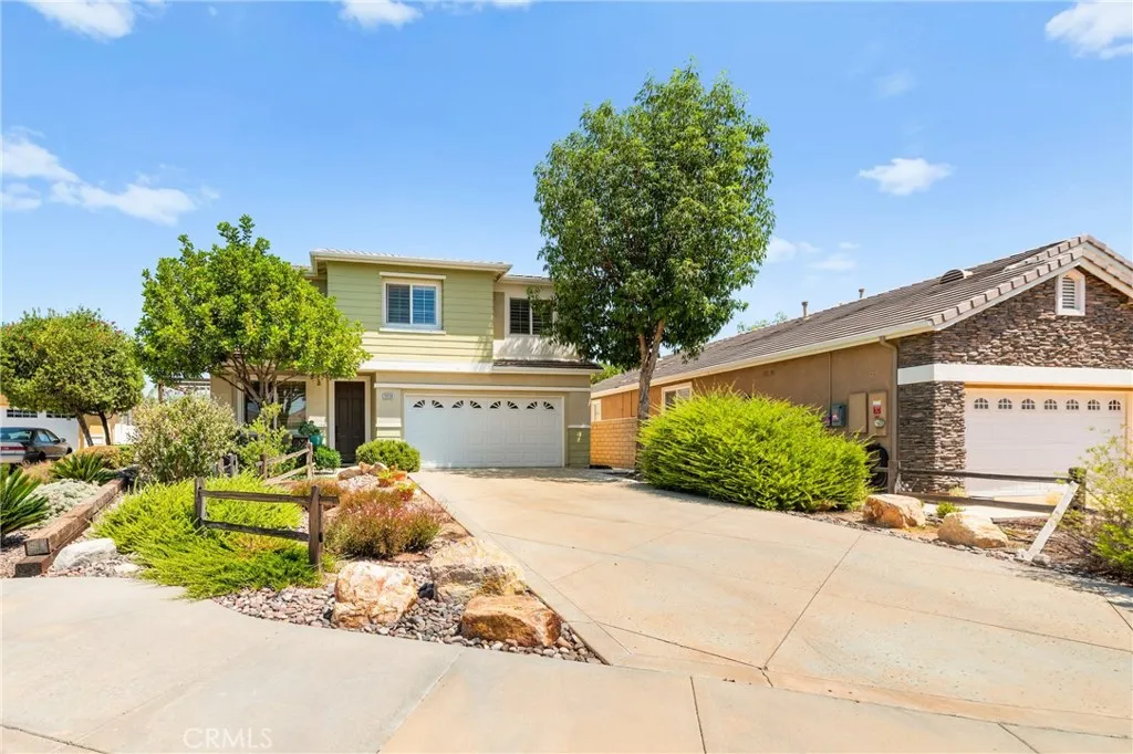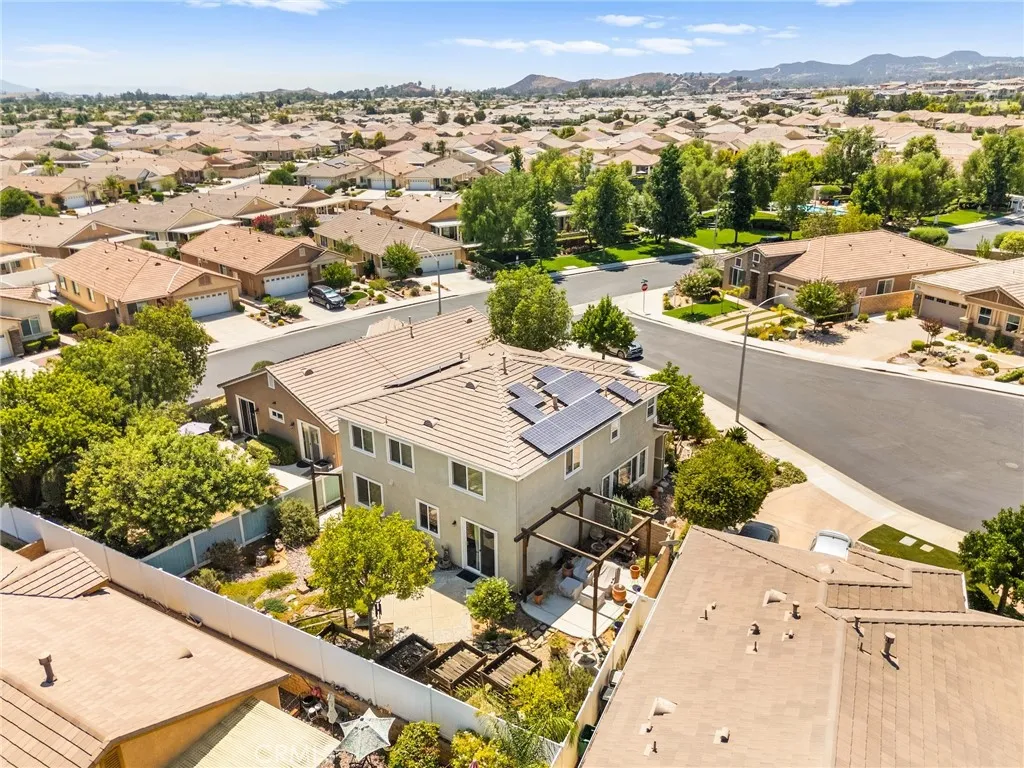 Welcome home to 26538 Roseate Circle, located in the gated 55+ Orchid/Primrose community at Pacific Mayfield in Menifee. This two story home offers 4 bedrooms, 3 bathrooms, and 2,398 sq. ft. of living space. This home has been beautifully maintained and offers a bright, open layout with neutral paint colors and an abundance of natural light streaming through numerous windows. The main floor features a spacious living room with a cozy fireplace, perfect for relaxing or entertaining. The kitchen is a chefs dream with plenty of cabinetry, granite countertops, a large island, and stainless steel appliances. A water filtration system ensures fresh, clean water throughout. The tile flooring on the main level is accented with gorgeous wood inlay, and plantation shutters add elegance throughout the home. The main floor also includes a convenient bedroom and full bath, ideal for guests or multi-generational living. Upstairs, youll find the primary suite, an additional bedroom, a spacious loft, and a laundry room for easy access. The exterior offers low-maintenance landscaping with a drip irrigation system throughout the yard and is nestled on a quiet cul-de-sac. Solar panels and a Quiet Cool whole house fan help keep energy costs low, adding to the homes efficiency. Enjoy resort-style living with community amenities such as a pool, spa, pickleball courts, community center, and scenic walking pathsall within the security of a gated community. Come take a lookyoure sure to fall in love!
