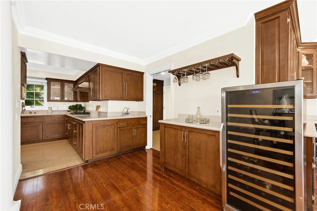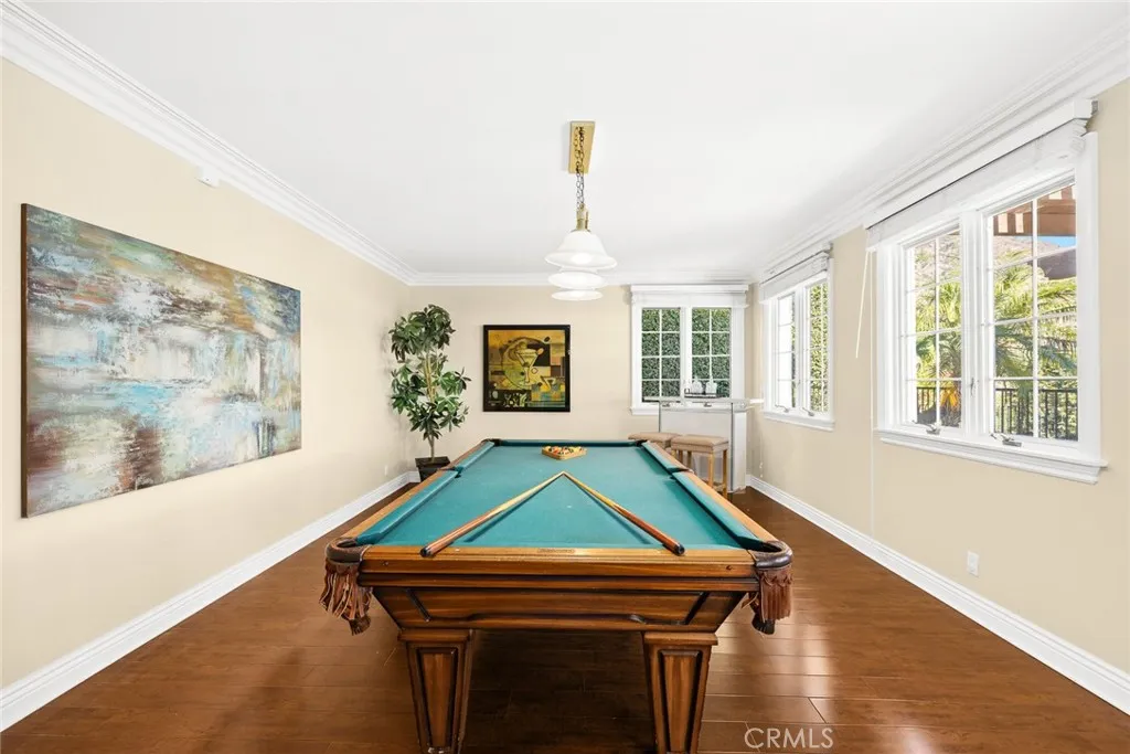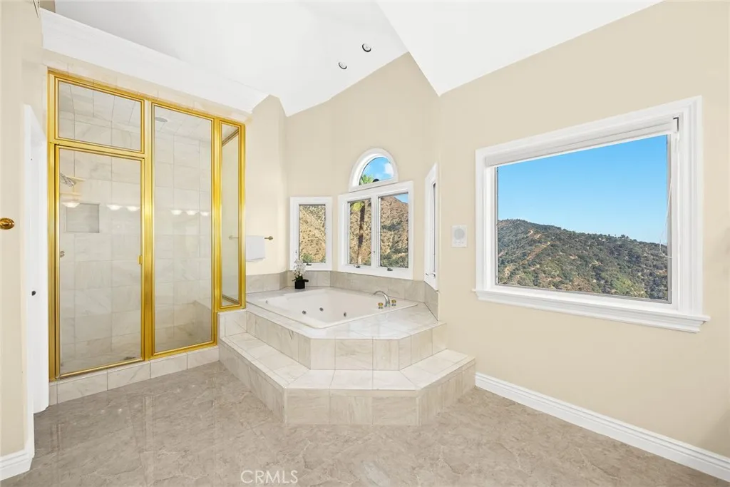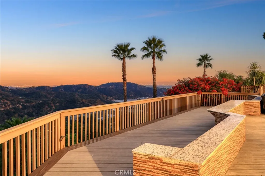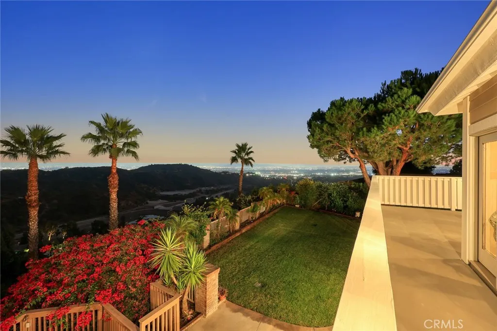 This spectacular view home, nestled in Arcadia's highly desirable Highland Oaks neighborhood, is part of the prestigious Arcadia School District and exemplifies Southern California living with expansive panoramic views of the gardens, mountains and city lights. Situated on a hilltop, this beautifully updated estate offers the perfect combination of serenity, breathtaking views and privacy. As you approach the home you're welcomed by a meticulously landscaped front yard and a paved circular driveway leading to an elegant entry. The artistry of marble inlay flooring graces the entry and living room, which seamlessly integrates indoor and outdoor spaces through walls of glass windows framing the stunning landscapes. The bright family room, with views of the pool and canyon, opens onto a large outdoor patio, perfect for entertaining. Anchored by two gas fireplaces, one in the living room and another in the family room, this home exudes warmth and comfort. The formal dining room and breakfast room, both featuring walls of glass, continue showcasing gorgeous scenic canyon views. Additional features include a large recreation room and beautiful wood floors throughout the living areas, enhancing the home's natural charm. Originally built in 1959 then rebuilt in 1991, this expansive 6,103 sq. ft. estate offers 8 bedrooms, 7.5 bathrooms, with 5 en-suite bedrooms upstairs and 1 en-suite downstairs. The primary suite elevates luxury with a fireplace, direct access to a sun-deck patio, two large walk-in closets, and a spa-like bathroom with a soaking tub offering incredible canyon views