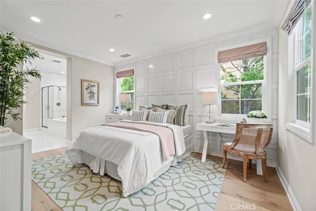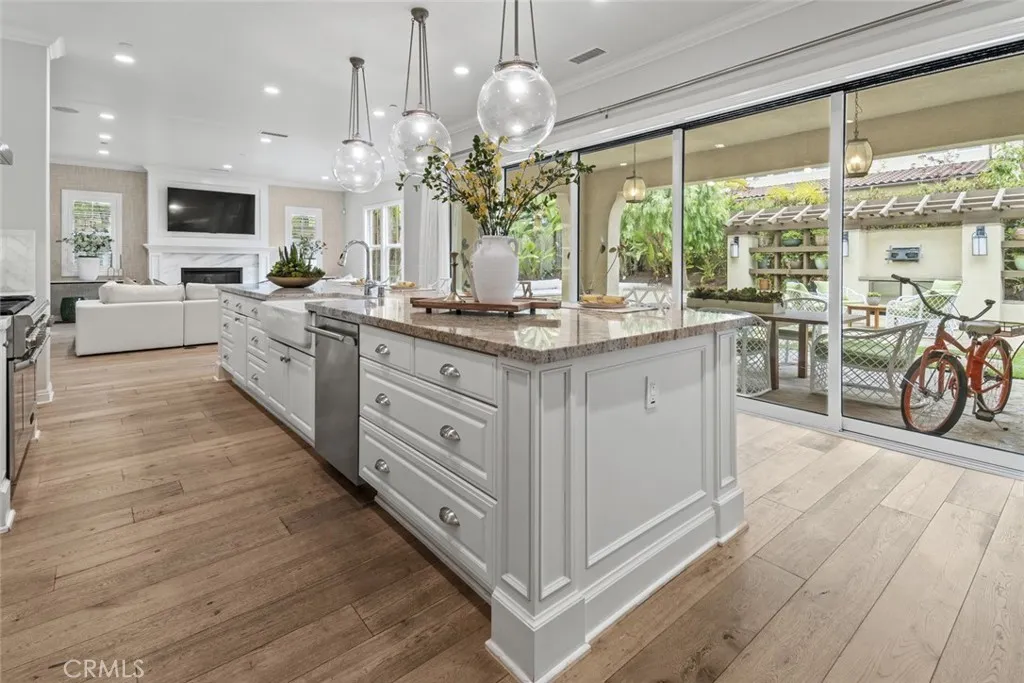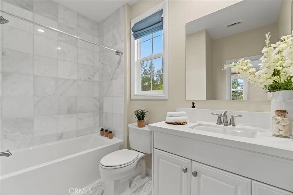 A stunning former model home located in the prestigious Great Park community. This beautifully designed residence features high-end upgrades throughout, including custom lighting, window treatments, wall paneling, wainscoting, and a state-of-the-art alarm and speaker system. The homes interior exudes elegance with custom paint and thoughtful electrical enhancements. The main floor offers a junior master bedroom with a full bath, perfect for guests or multi-generational living. The gourmet kitchen is equipped with top-of-the-line Thermador stainless steel appliances, upgraded granite countertops, a custom backsplash, and white raised panel cabinets. Luxurious finishes continue in the primary suite, featuring marble slab upgrades in the master bath. The flooring throughout the home includes a blend of stone, wood, and carpet in designated areas, adding warmth and style. Step outside to the professionally landscaped front and back yards, where you'll find an outdoor BBQ, fire pit, and a tranquil courtyard fountain  perfect for entertaining or relaxing. As a resident of the Great Park community, enjoy access to premier amenities, including the five-acre Great Lawn, a resort-style pool and spa, sports courts, an outdoor kitchen, and recreational trails. The location offers convenience with direct access to Great Park facilities and inclusion in the highly acclaimed Irvine Unified School District, featuring the future Beacon Park K-8 School and Portola High School. This exceptional home blends luxury, comfort, and convenience in one of Irvines most sought-after neighborhoods. Don
