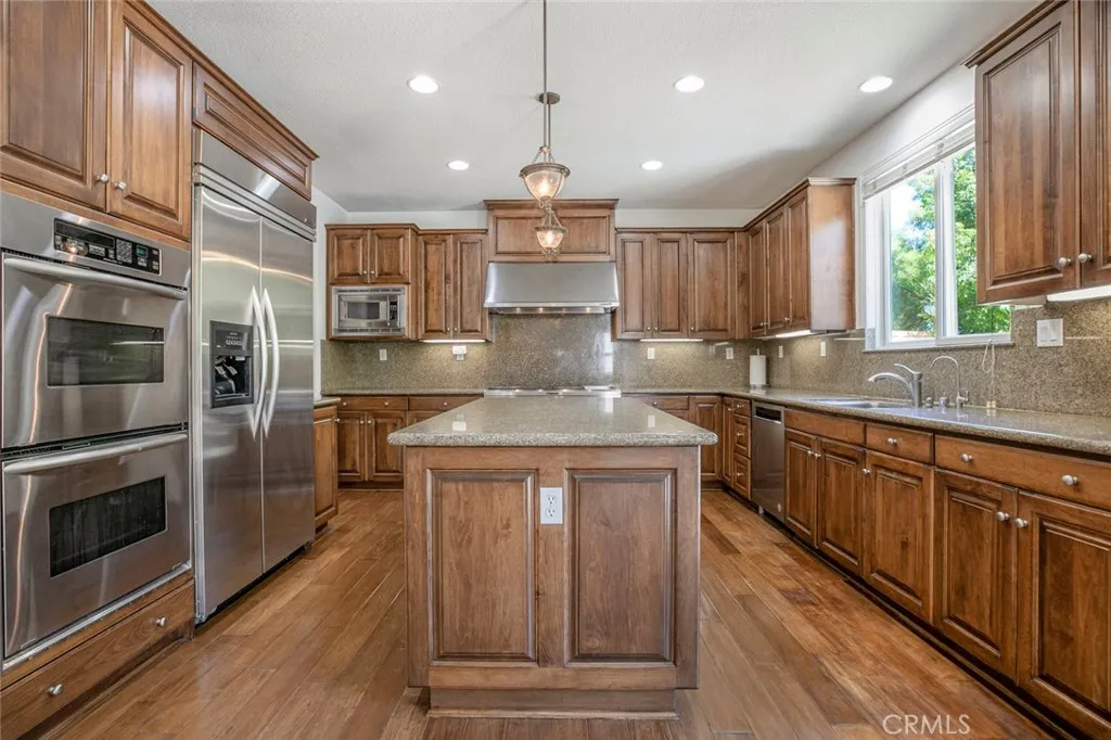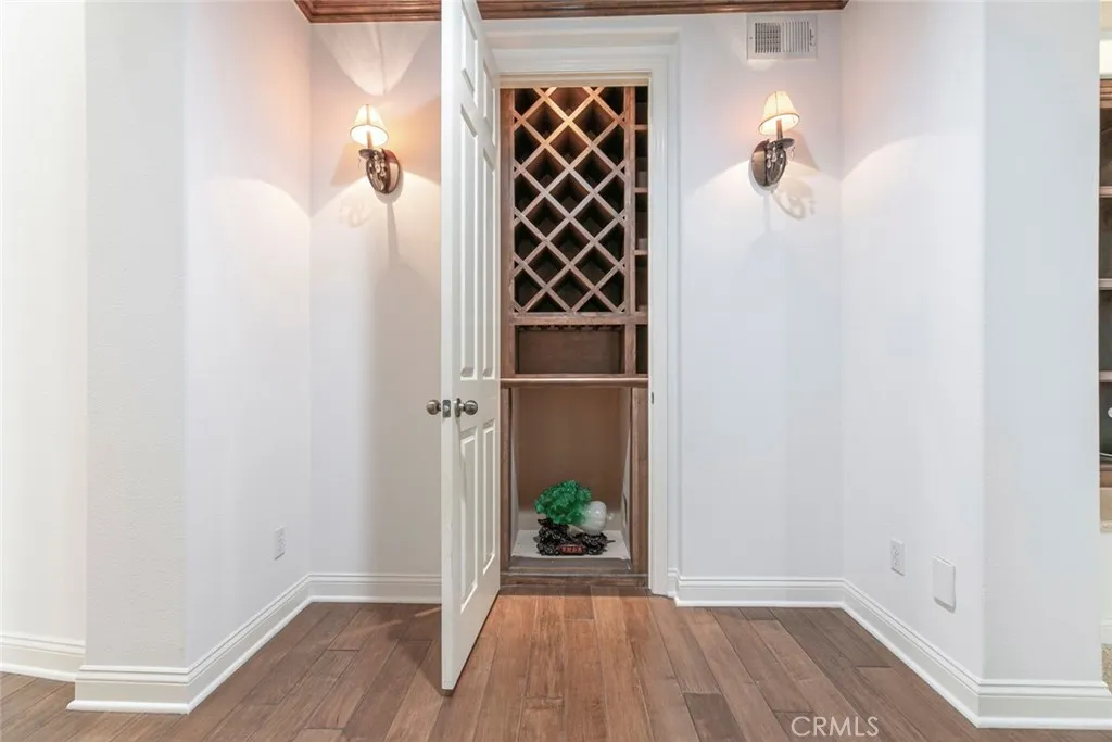 New interior paint throughout and refreshed! Welcome to the prestigious gated community of Westridge Valencia, where elegance, comfort, and lifestyle come together. Now back on the market with a fresh new look, this beautifully appointed home has just been refreshed with new interior paint throughout and some updates that make it feel crisp, clean, and move-in ready. Tucked away in a private cul-de-sac, the home opens with hardwood floors, crown molding, and a wood-finished foyer ceiling that creates a warm, refined first impression. A custom wine storage nook tucked behind a discreet door adds a touch of charm and sophistication. The spacious floor plan features formal living and dining rooms with coffered ceilings, a large family room with fireplace and built-ins, and a chefs kitchen with granite counters, center island, and built-in stainless steel appliancesideal for entertaining or everyday living. A downstairs en suite bedroom and a dedicated office provide flexible options for guests or work-from-home needs. A dramatic staircase with a high ceiling adds architectural volume and natural light as you transition to the upper level. Upstairs, a generous loft serves as a central retreat connecting four bedrooms, including one with its own en suite bath. A convenient laundry room enhances functionality. The private primary suite is a true sanctuary with two walk-in closets and a spa-inspired bath offering dual vanities, a soaking tub, and a separate shower. Step outside to a backyard retreat designed for California living, featuring a spacious patio with a pergola-shaded s
