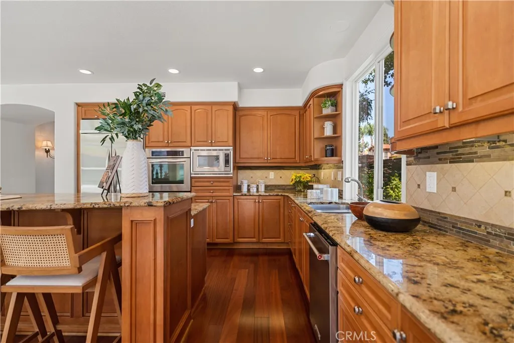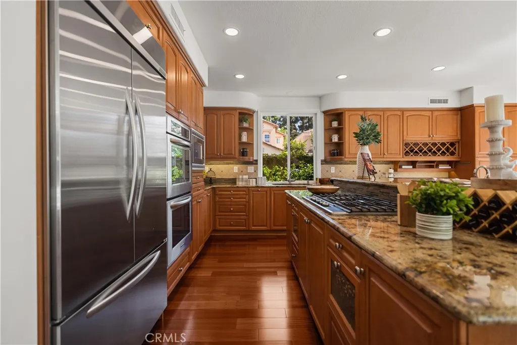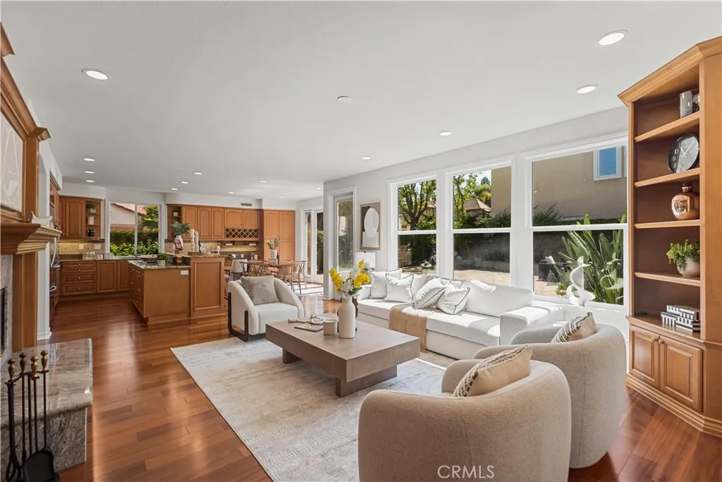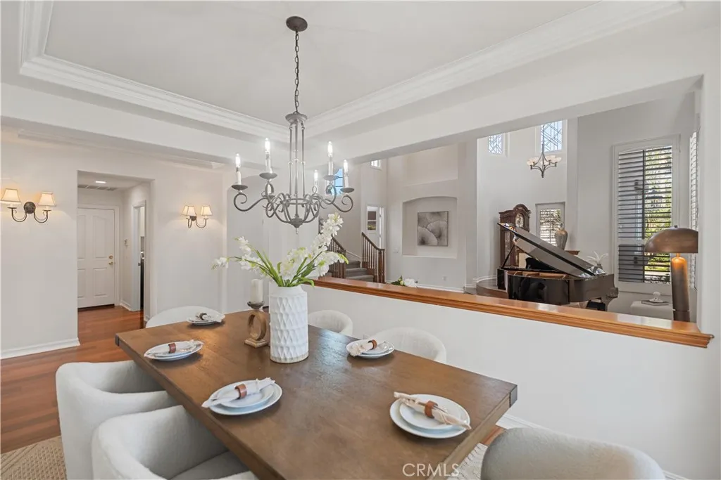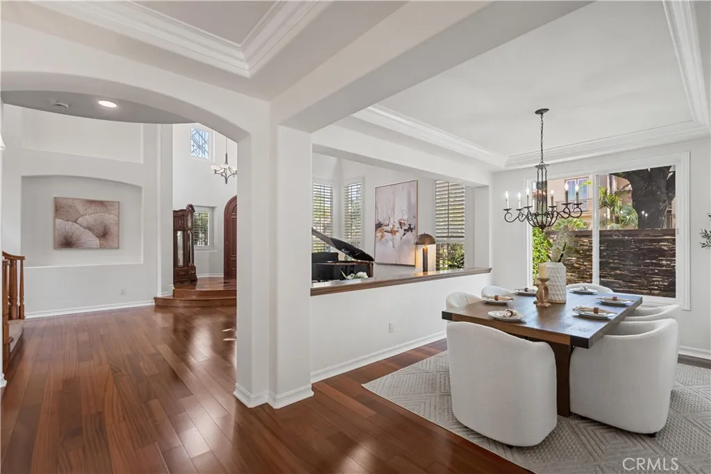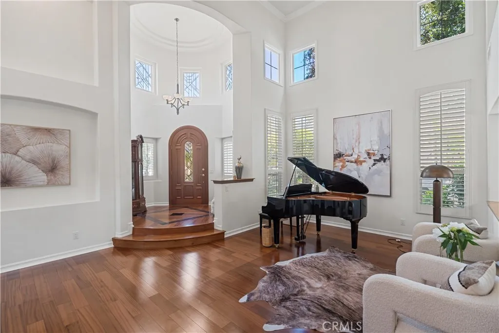 Welcome to this elegant Cristal model estate, perfectly situated in the prestigious 24-hour guard-gated Trailwood community of Northwood Pointe. Featuring 5 bedrooms and 4 bathrooms, this home makes an immediate impression with its grand foyer entry, soaring cathedral ceilings, and an open floor plan filled with natural light. The first level includes a main-floor junior master suite with full bath, a formal dining room, and rich wood flooring throughout. From the dining area, enjoy tranquil views of the side-yard water fountain. The resort-inspired backyard is an entertainers paradisefeaturing a private Jacuzzi/SPA with rock waterfall, custom wood patio, electric folding sunshade shelter, outdoor BBQ, and a cozy fireplace. This rare oversized lot provides one of the most elegant and spacious outdoor retreats in the entire community. Additional highlights include: 24-hour guard-gated with Low HOA fees. Access to two community swimming facilities with full amenities. Walking distance to Blue Ribbon schools: Canyon View, Sierra Vista, and Northwood High. Conveniently close to two shopping centers including Zion and H-Mart supermarkets.