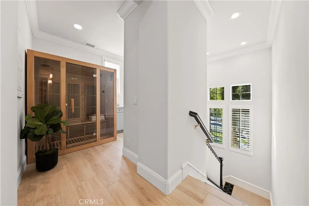 An upgraded, fully RH-furnished dream home in Irvines serene Quail Hill community, offering a private garden oasis and direct access to scenic hiking trails. This detached corner-lot residence features 3 spacious bedrooms upstairs and a versatile downstairs office with stylish sliding barn doors. Thoughtfully designed and professionally furnished, the home blends comfort and sophistication throughout. Highlights include: Luxury Interiors Restoration Hardware lighting & furnishings, automatic shades, and a fully stocked kitchen with premium WOLF stove appliance. Wellness & Lifestyle Private infrared sauna, outdoor patio with canyon views, built-in BBQ, and Peloton-equipped fitness space in the primary suite. Smart & Secure Hardwired exterior security cameras, Nest system, and Google doorbell for peace of mind. Elegant Primary Suite Complete with a wet bar & mini fridge, free-standing tub, and a spacious walk-in closet. Convenience Attached 2-car garage with built-in storage, plus a bright laundry room upstairs. Meticulously maintained and move-in ready, this home offers a rare combination of modern luxury, privacy, and natural beautya true sanctuary in the heart of Irvine.