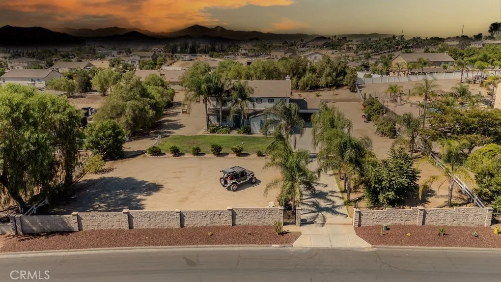 WELCOME HOME TO YOUR MASSIVE URBAN PARADISE !! 4150 SQUARE FEET AND OVER AN ACRE OF GATED SERENITY AND BEAUTY..AND ONLY MINUTES FROM THE REST OF THE URBAN WORLD !! 4 BEDROOMS AND 3 1/2 BATHS ..4 CAR GARAGE..PAVED RV SPACE WITH AUTO LIFT POTENTIAL AND UPGRADES ALREADY IN PLACE..BACKYARD HAS ENOUGH ROOM TO DREAM ON A GRAND SCALE ..POOL..PICKLE BALL..MULTIPLE ADU.. OUTDOOR KITCHEN STYLE COVERED PATIO WITH BIG TV, FIRE PIT, BBQ MISTER SYSTEM, FANS AND EVEN MOOD LIGHTING BEGGING FOR WEEKEND GATHERINGS AND WEEKDAY ESCAPES ..COZY COVERED SPA TO SOOTH THE ACHES AND PAINS WHILE ENJOYING THE VIEWS OUT BACK... LETS GO INSIDE TO THE FANTASTIC CHEF KITCHEN WITH LOTS OF STAINLESS AND GRANITE, LARGE ISLAND, WALK IN PANTRY AND STORAGE GALORE.. WANDERING INTO THE BRIGHT AND OPEN FLOORPLAN YOU'LL NOTICE THE EXTEREMLY FUNCTIONAL LAYOUT ON THE GROUND FLOOR AND THE SUBTLE PATH TO THE 2ND FLOOR ...WHERE THE 3 SPACIOUS BEDROOMS AWATE YOUR FAMILY AND FRIENDS ...EACH WITH ITS OWN BATHROOM GYM / EXERCISE ROOM, STUDIO, HOME OFFICE...ROOM FOR ALL OF THEM... NEXT UP--AN INVITING MAIN SUITEWITH FIREPLACE, WALK IN CLOSETS, DUAL VANITIES ALL LEADING TO WALK IN SHOWER AND SEPERATE SOAKER TUB. TWO TWIN OVERSIZED GARAGES HOLD 4 VEHICLES HAVE BUILT IN FEATURES, SINK, 220 ELECTRIC AND LOTS OF EXPANSION POTENTIAL.. BACK RV SLAB HAS BEEN CUSTOM REINFORCED FOR CAR LIFT--12" CONCRETE-- HOBBY AUTO RESTORATION AND REPAIR MECCA-- AND A LOOOONG DRIVEWAY LEADS TO THE HOME FOR EZ PARKING FOR LOTS OF FRIENDS. COME VISIT THE STYLE AND VALUE PERRIS OFFERS ...THE NEW HOME BUILDERS SEE IT.. AND ENJOY THE BENEFITS OF BEING UR